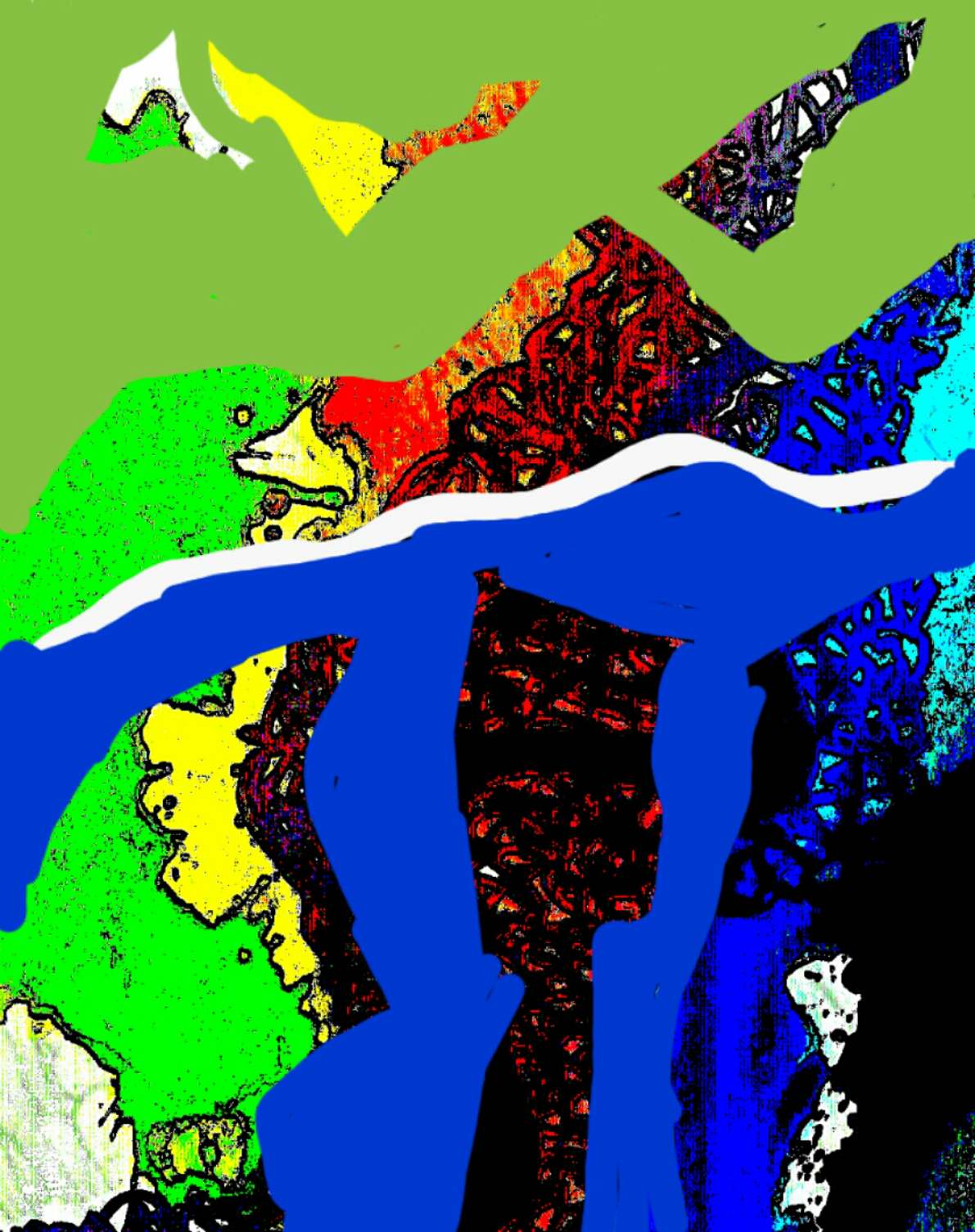 Jedan ciklus u dvije varijacije sa suprotstavljene dvije dominantne boje, zelena gore, plava dolje, uz nešto bjeline i crnila na obje strane.