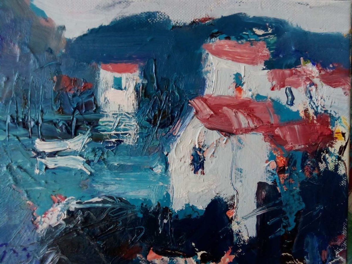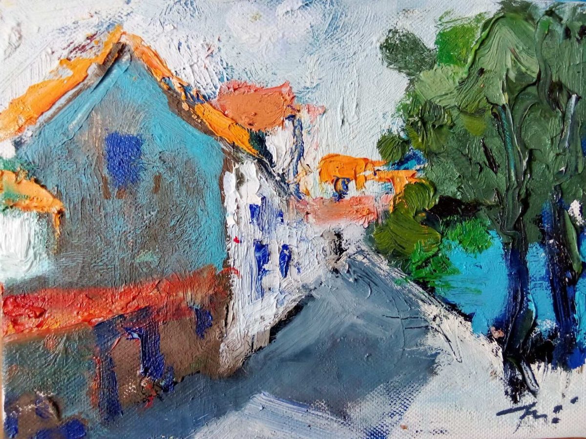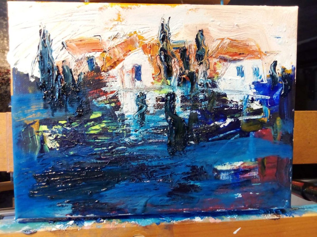Pršti bojom, snažnim, nezadrživim kolorom stvarajući pomalo i napetu atmosferu, nešto se događa, nešto se očekuje…