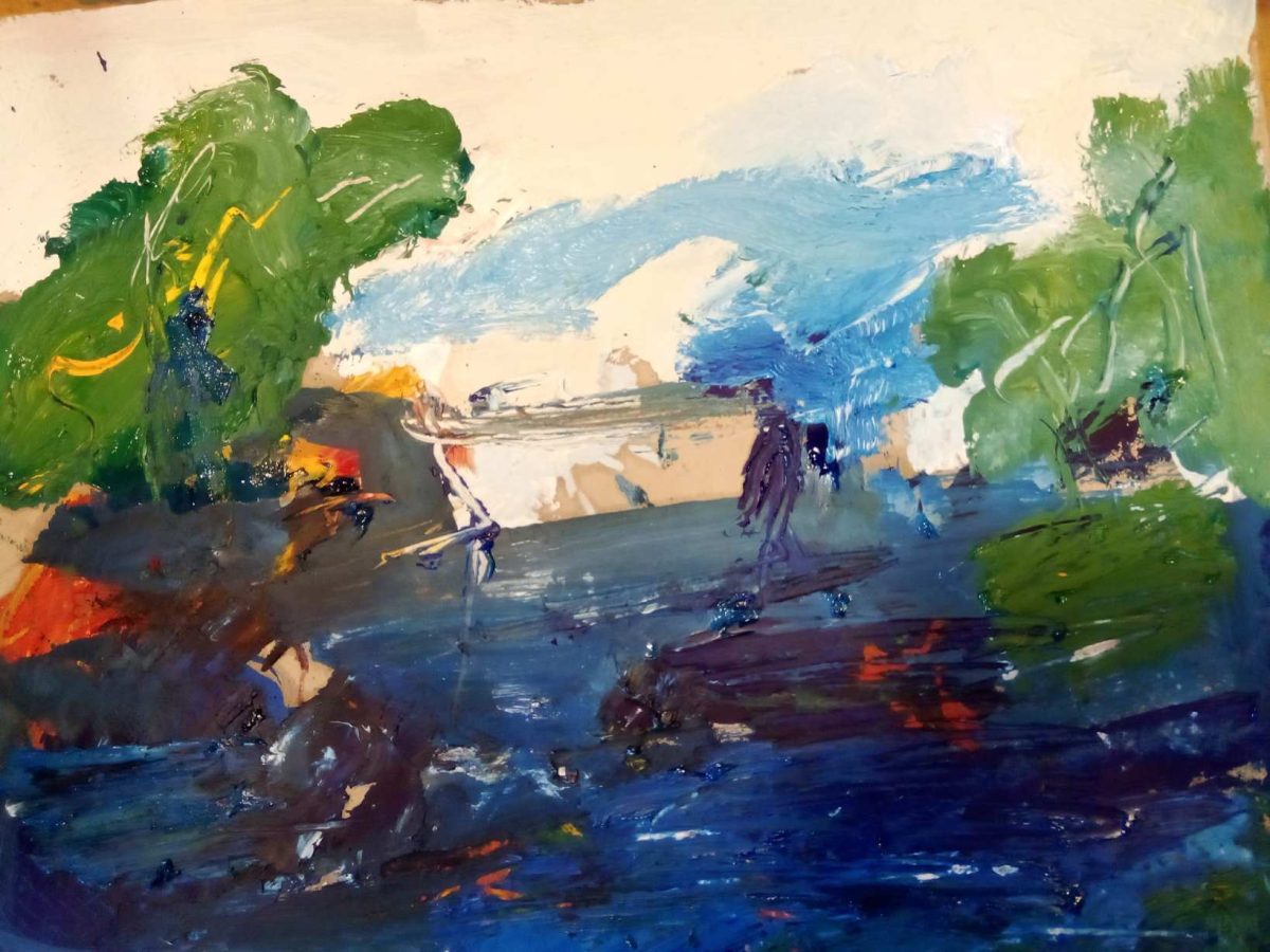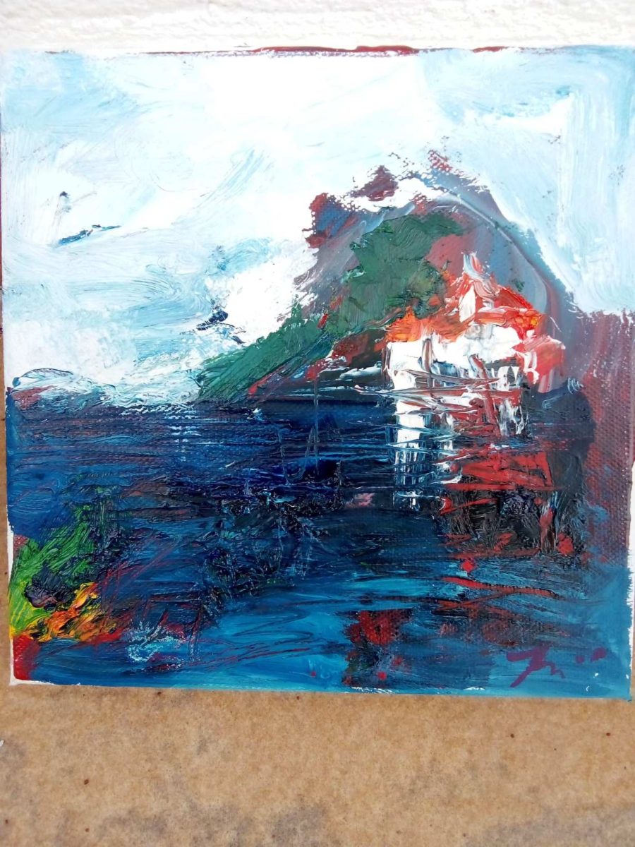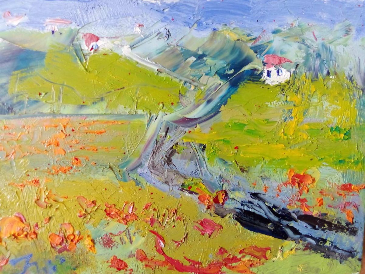Pršti bojom, snažnim, nezadrživim kolorom stvarajući pomalo i napetu atmosferu, nešto se događa, nešto se očekuje…