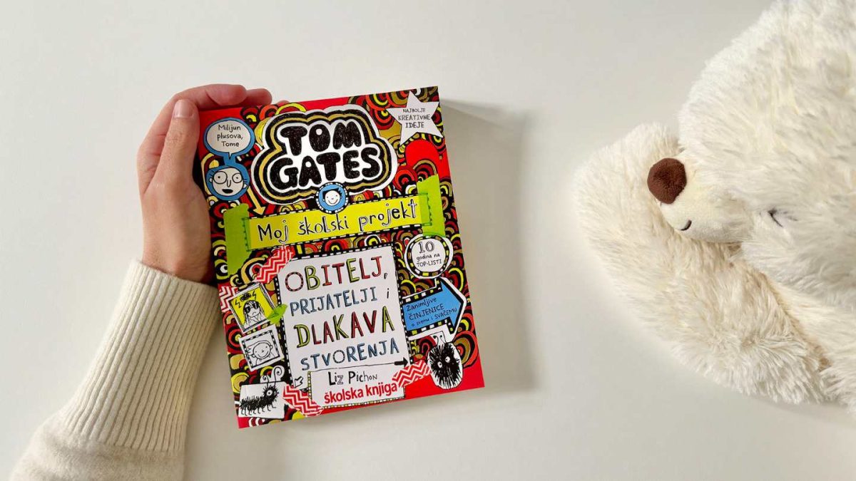 U novoj, dvanaestoj knjizi serijala Tom Gates – Obitelj, prijatelji i dlakava stvorenja (koju je prevela Petra Matić) naš je omiljeni junak zaboravio u školu ponijeti svoju fotografiju kad je bio malo dijete, njegove cipele proizvode čudne zvukove i, dok se žuri u učionicu, sretne Amber koja je prehlađena i kihne prema njemu. Što još može poći po zlu?