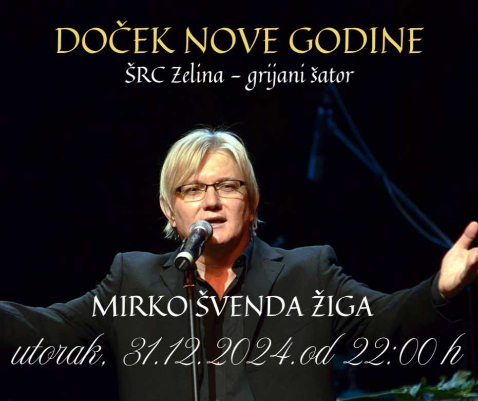 U Svetom Ivanu Zelini, tridesetak kilometara od Zagreba, nastupa Mirko Švenda Žiga čiji koncert počinje u 22 sata. Koncert se održava na ŠRC Zelina, u grijanom šatoru gdje će se pripremiti bogata ponuda hrane i pića.