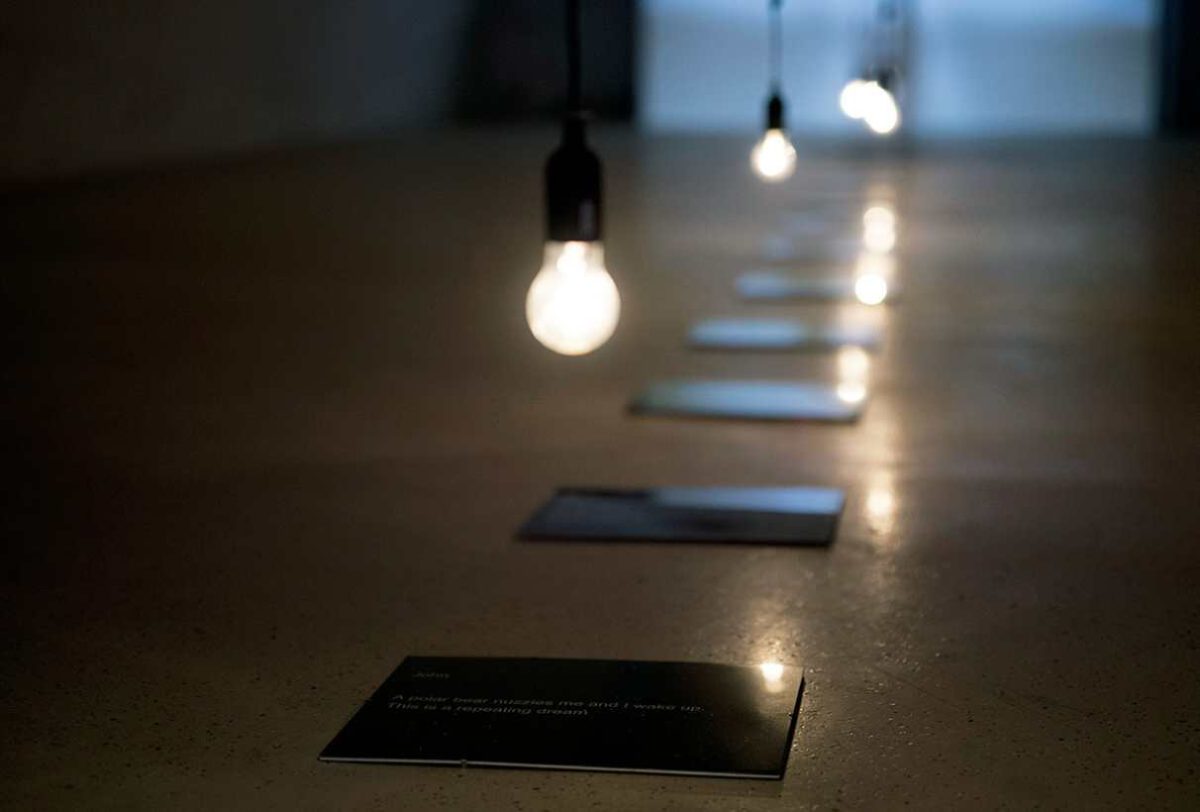 Instalacija Anima, animalis temelji se na pedesetak tekstova preuzetih s internetske domene Arhiv snova, na kojoj je od 2013. godine – kada je izrađena kao središnji rad autoričinog projekta ‘Između neba i zemlje’ za 55. Venecijanski bijenale – zaprimljeno više od 2300 opisa snova korisnika na različitim jezicima.