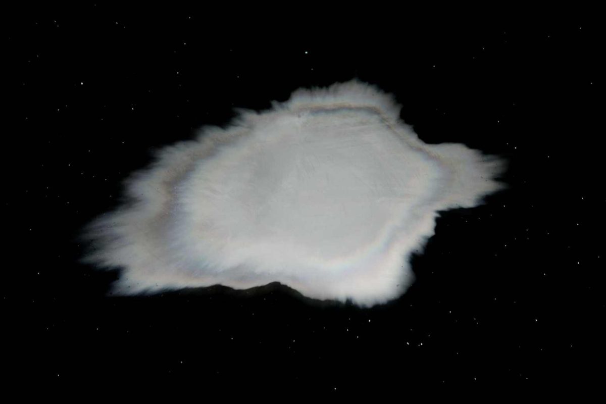 Izložba Neli Ružić smještena je u sjeveroistočnu kulu Dioklecijanove palače, prostoru izrazito dugog trajanja – povijesnog i materijalnoga. Robusni zidovi kasnoantičke arhitekture, svjedoci tisućljetnih transformacija, sučeljavaju se s tranzijentnim karakterom rada u kojem se bilježenje izdaha – kratkotrajnoga fizičkog procesa emanacije topline – i pojavljivanje čestica prašine s njihovim vizualno atraktivnim konstelacijama, povezuju s idejom kozmosa kao vremenski nesagledivog prostora. U tom susretu monumentalnog i efemernog, trajnog i prolaznog, otvara se slojevita refleksija o vremenu, materiji i ljudskoj prisutnosti u beskonačnom protoku.