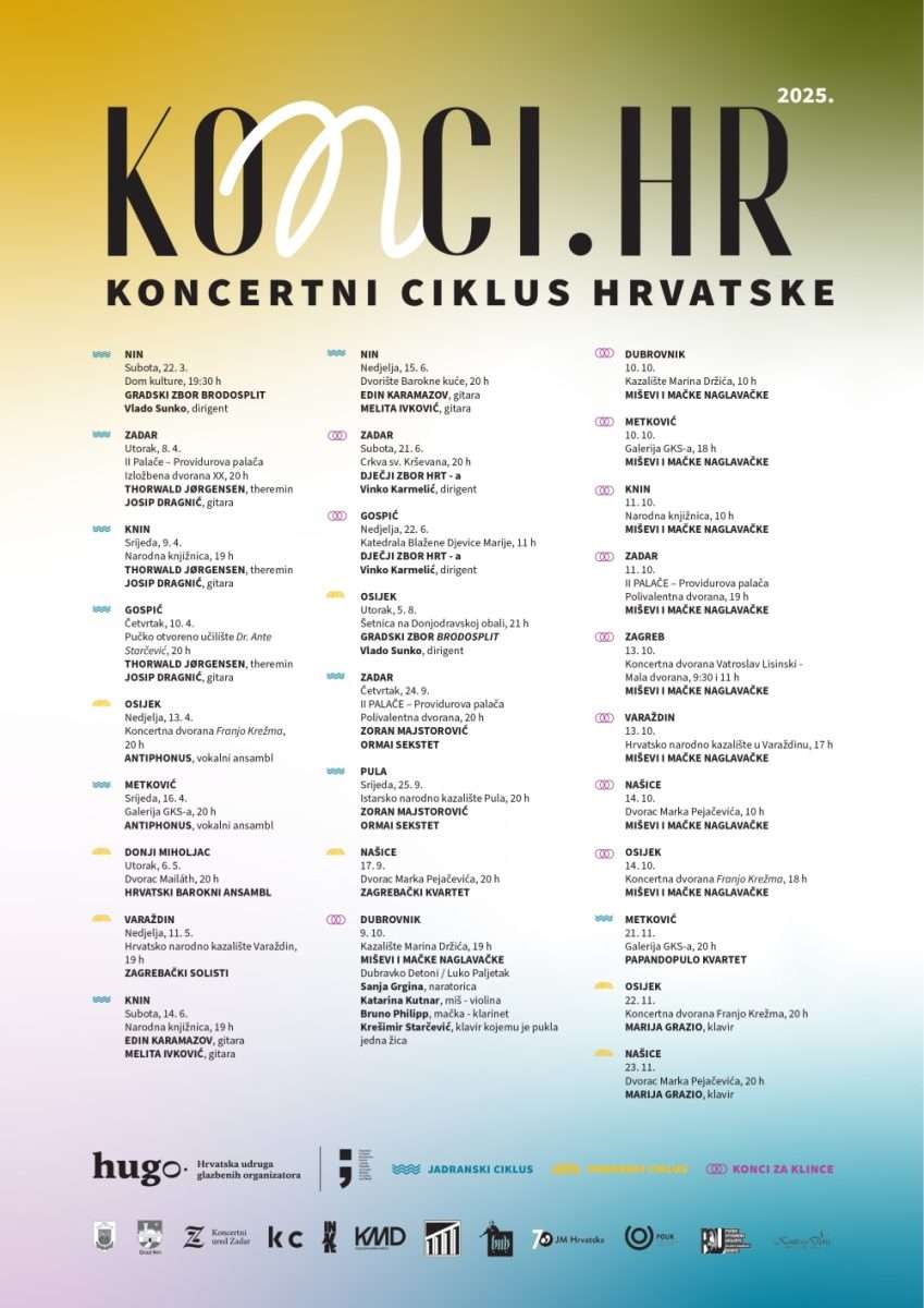 U Zadru, Kninu i Gospiću nastupaju Thorwald Jørgensen, theremin i Josip Dragnić, gitara a u Osijeku i Metkoviću Vokalni ansambl Antiphonus. Publika će u programu “Nevidljive žice” imati prilike čuti i vidjeti instrument theremin (teremin), jedan je od najranijih elektronskih instrumenata. Izumio ga je Leon Teremin 1919. godine, a posebnost instrumenta je u tome da je to možda i jedini glazbeni instrument koji se svira bez doticanja. Uz virtuoza na theremin Thorwalda Jørgensena drugi član ovo nesvakidašnjeg glazbenog dueta je hrvatski gitarist Josip Dragnić, član Splitskog gitarskog kvarteta i pokretač Dana klasične gitare u Splitu te profesor na uglednom Luksemburškom glazbenom konzervatoriju. Članovi Vokalnog sastava Antiphonus koji djeluje pod vodstvom mo. Tomislava Fačinija za sam kraj Korizme pripremili su glazbenu poslasticu koja se rijetko izvodi u Hrvatskoj a riječ je djelu Françoisa Couperina “Leçons de Ténèbres” (Jeremijine tužaljke). Solistice su sopranistice anđeoskih glasova Anabela Barić i Monika Cerovčec a za orguljama je mo. Franjo Bilić.