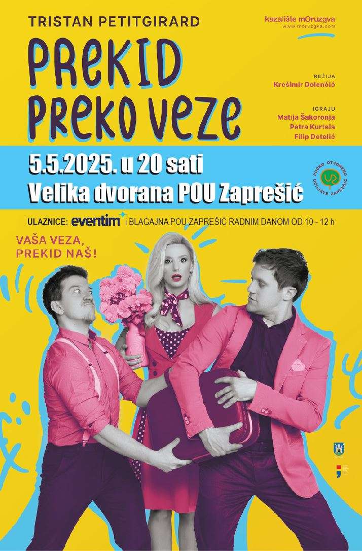 Za ovu urnebesnu komediju redovito se traži karta više što dokazuje da Prekid preko veze nije samo prolazan hit, već predstava koja svojom svježinom i humorom uveseljava publiku svih generacija. Ne propustite ovu priliku za smijeh, zabavu i jedinstvenu kazališnu večer.