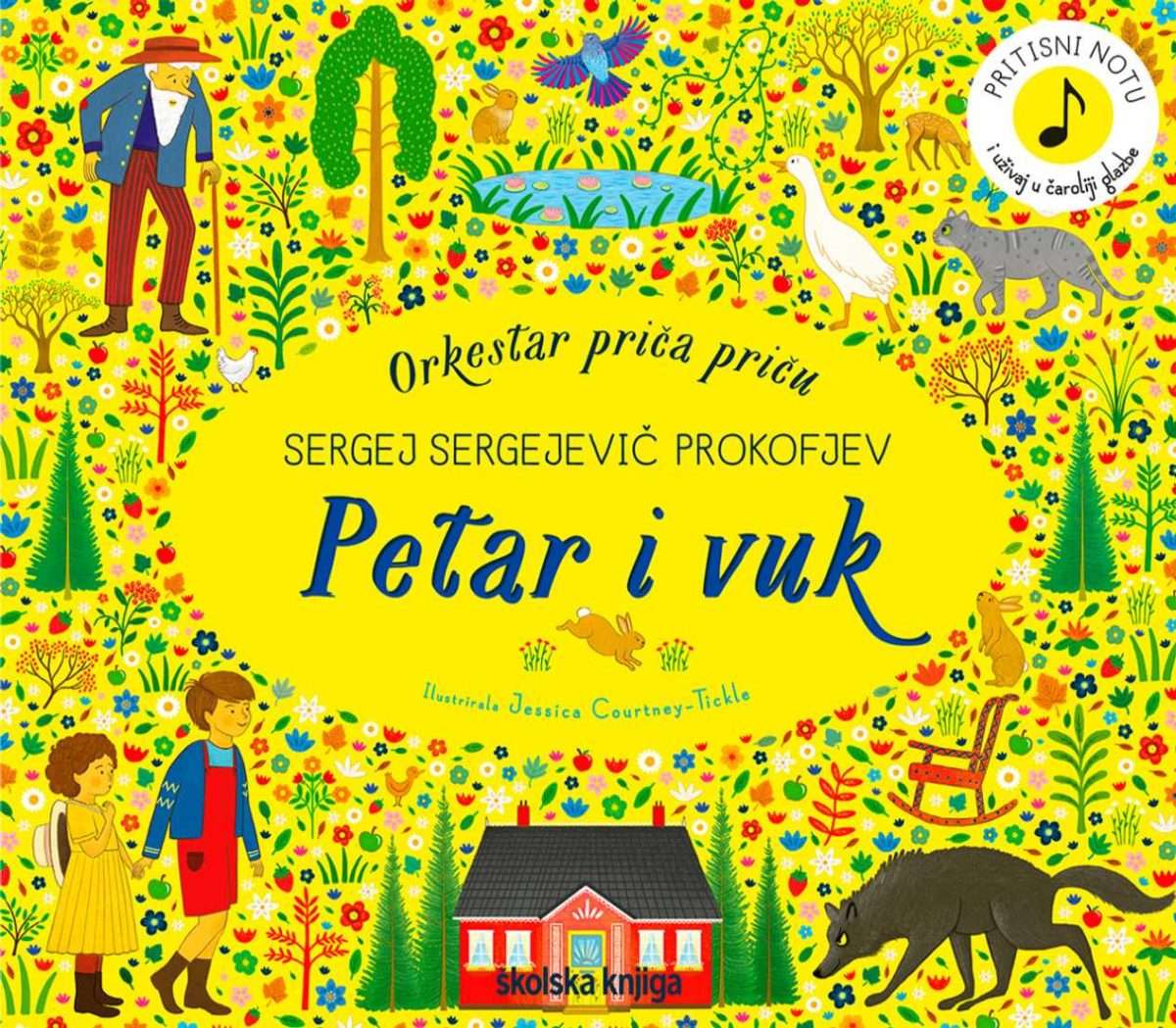 U toj klasičnoj glazbenoj bajci čitatelji kreću u šumsku pustolovinu s Petrom i Sofijom. Kad vuk zaprijeti ptičici, patki i djedovoj mački, mogu li Petar i Sofija nadvladati strah i spasiti ih? Djeca će doznati odgovore, aktivirati glazbene ulomke i otkriti kako zvuče fagot, klarinet, bubanj, truba, oboa… Za one koji žele znati više pripremljen je pojmovnik s pomoću kojega će lako usvojiti glazbenu terminologiju.