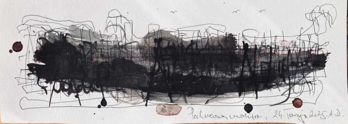 Novi set crteža Crtačevog dnevnika, nastao je u travnju 2025. A.D. Meditacije, molitve, metamorfoza; “Modeliranje prirode – imaginarni krajolici”, crteži mokrim crt. teh. na papiru: 10x15cm – 15x 40cm – 20x40cm (cca).