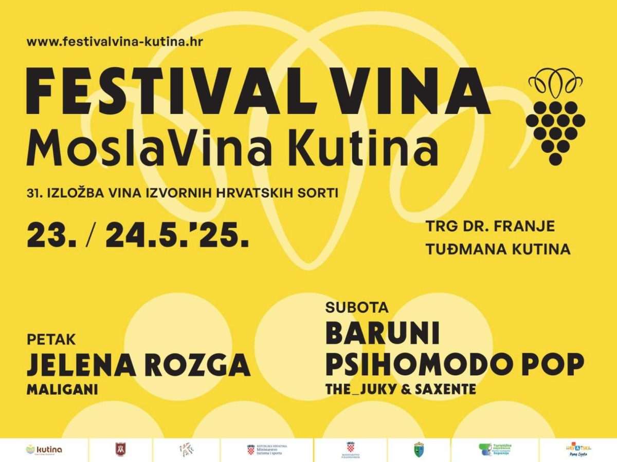 Detaljan program na https://festivalvina-kutina.hr/program/. WEB: www.festivalvina-kutina.hr Facebook: Festival vina – MoslaVina Kutina Instagram: Visit_Kutina_Moslavina i Tik Tok: https://www.tiktok.com/@visit_kutina_moslavina