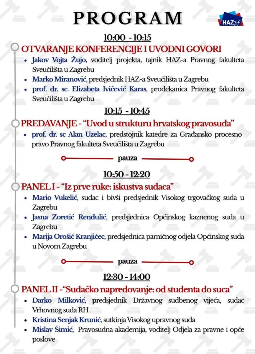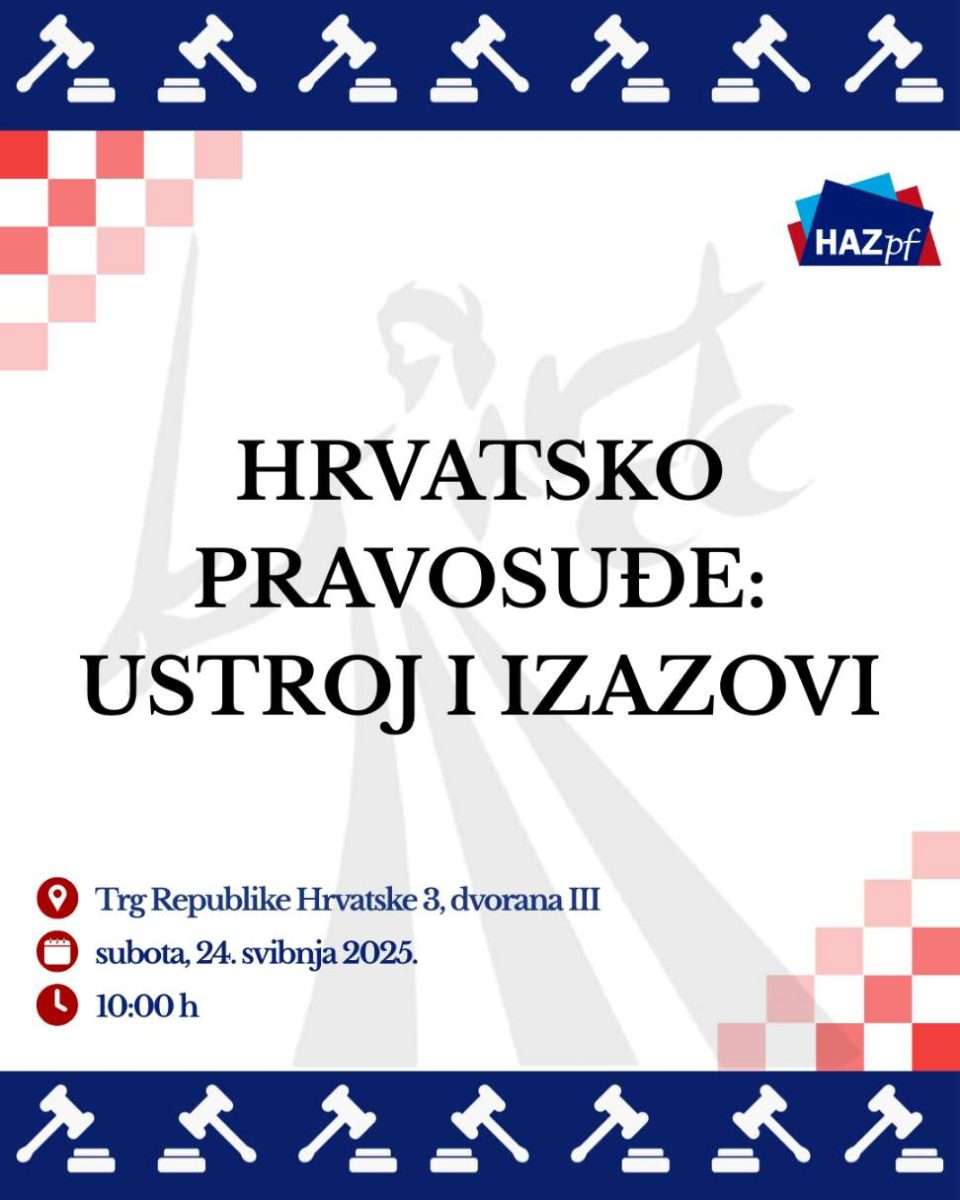U svjetlu neprekidnog diskursa o manjkavostima pravosudnog sustava RH, Hrvatska akademska zajednica Pravnog fakulteta Sveučilišta u Zagrebu organizira konferenciju Hrvatsko pravosuđe: ustroj i izazovi