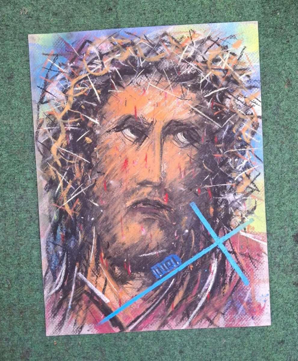 Slikar snažno ističe muku Isusa Krista, koristeći široki koloristički repertoar pastela.