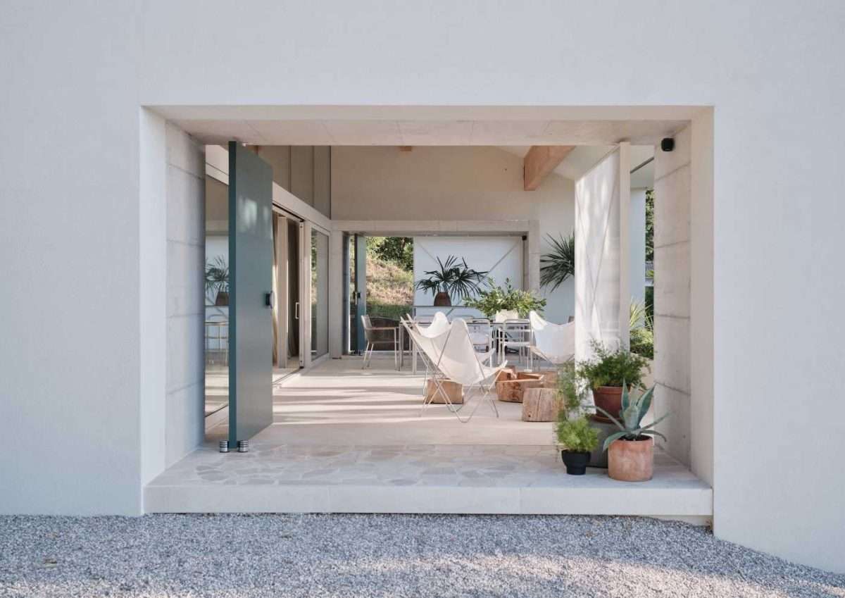 Smještena u diskontinuiranom rezidencijalnom krajoliku iznad Lovrana, kuća unutar zatečenih gabarita zadržava sve zatečene datosti – podjelu prostora, krovne lomove i otvore na zabatima – kako bi s neizmjernom lakoćom i sa svega nekoliko odluka prostor servisne radionice bio pretvoren u istinski ambijent odmora sa širokim, dalekim pogledom.
