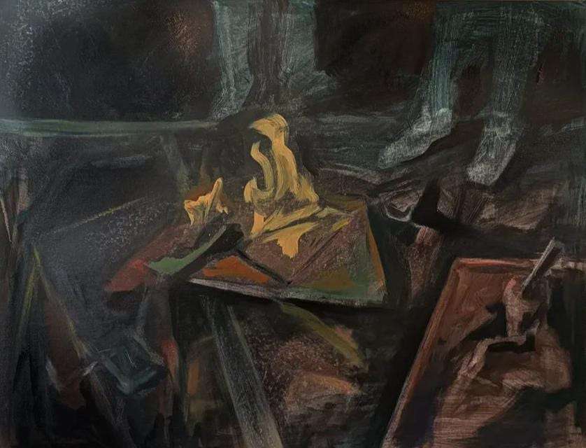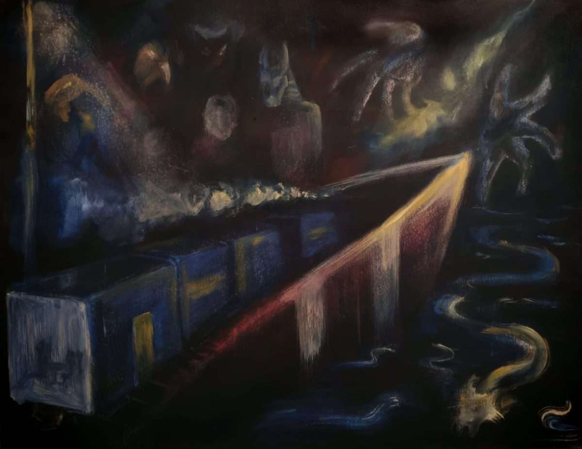 Pred nama je novi dramatični, mračni, tamni, neprozirni tercet tri ulja i akrila na platnu (100 x 80 i 130 x 100 cm), uskoro akademske slikarice Julije Kršlović, suvremene hrvatske likovne umjetnice, autorice već sada zanimljivog i izazovnog opusa