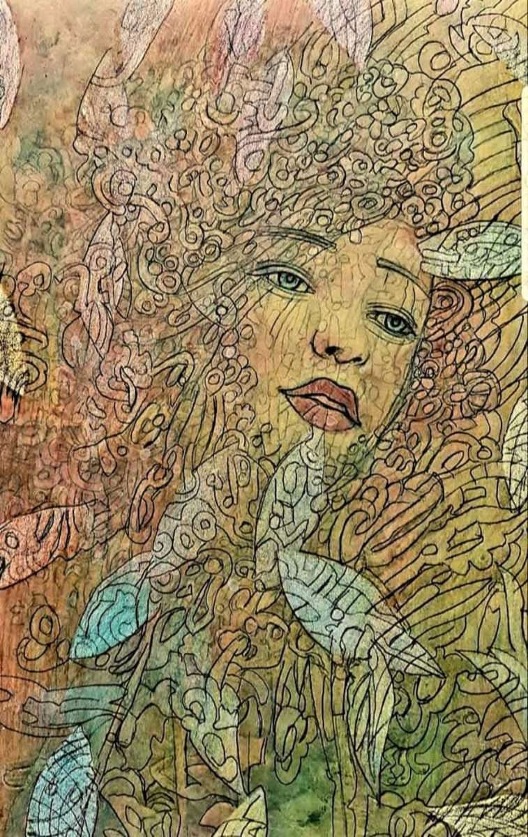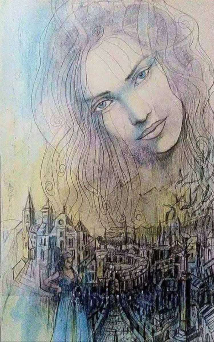 Jedna od tih, njemu tako privlačnih motiva jest i lik žene koja izranja iz povijesti, iz različitih povijesnih doba (što očitavamo po njenoj odjeći, nakitu).