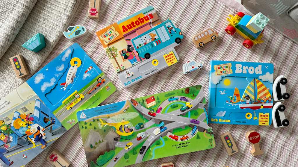 - Na putovanju s najmlađima korisno je imati zabavne slikovnice s pomičnim dijelovima Dijete se vozi : Auto , Autobus , Brod i Avion, a dobro će doći i izvrsne slikovnice iz serije Dodirni i osjetiti koje potiču razvoj motoričkih i jezičnih vještina te taktilne osjetljivosti.