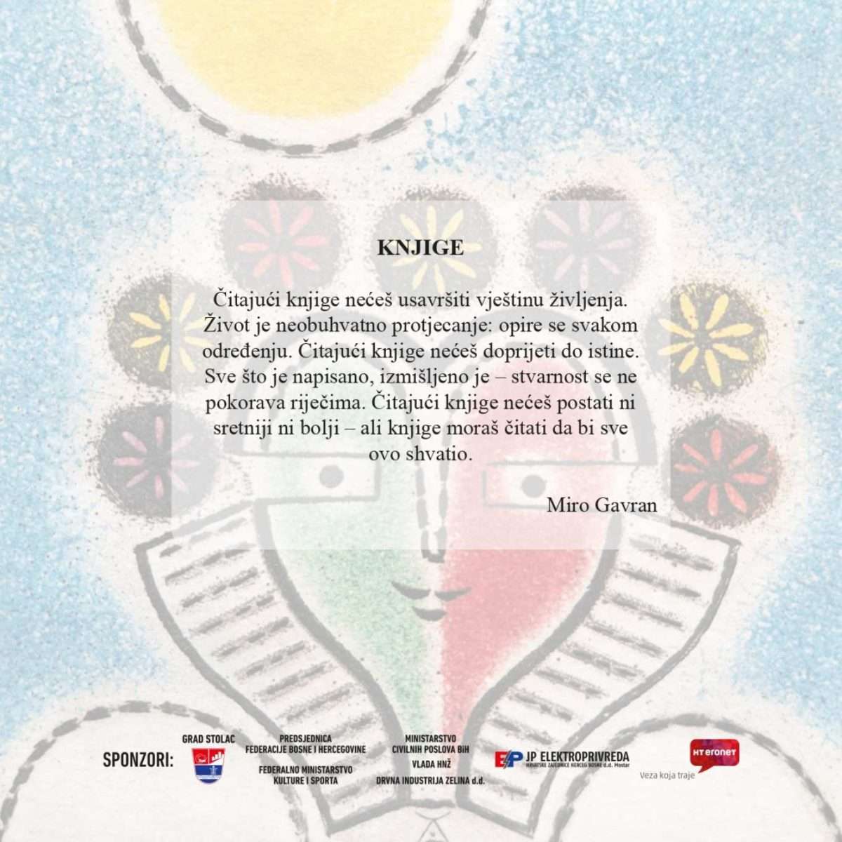 Živimo u svijetu i vremenu gdje je čitanje knjiga degradirano, stoga je svaki poticaj vraćanja kulture čitanja tamo gdje joj je mjesto hvalevrijedan i dobrodošao. U bespuću mudrih i dragocijenih citata Mire Gavrana navedeni mi se učinio najprikladnijim kako bih ovogodišnjeg laureata u najkraćem predstavio na jednostavan i razumljiv način.