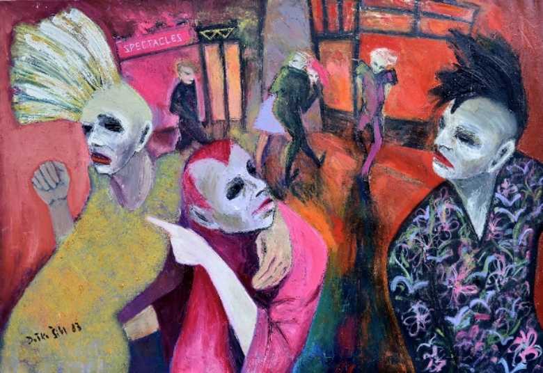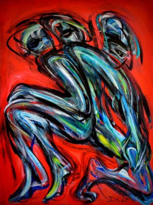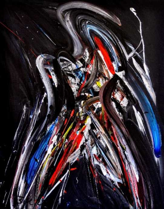 Važan element u kreiranju tih strašću uznemirenih tijela jest i boja, mlazovi, tragovi, mrlje, točke, prate pokrete figura. Ustvari boja pleše zajedno s misterioznim, nepoznatim figurama, boje izvode svoj atraktivni, zanosni, zavodnički ples. Boje izvode čudesnu koreografiju u prostoru, boje su same sebi središte svijeta.