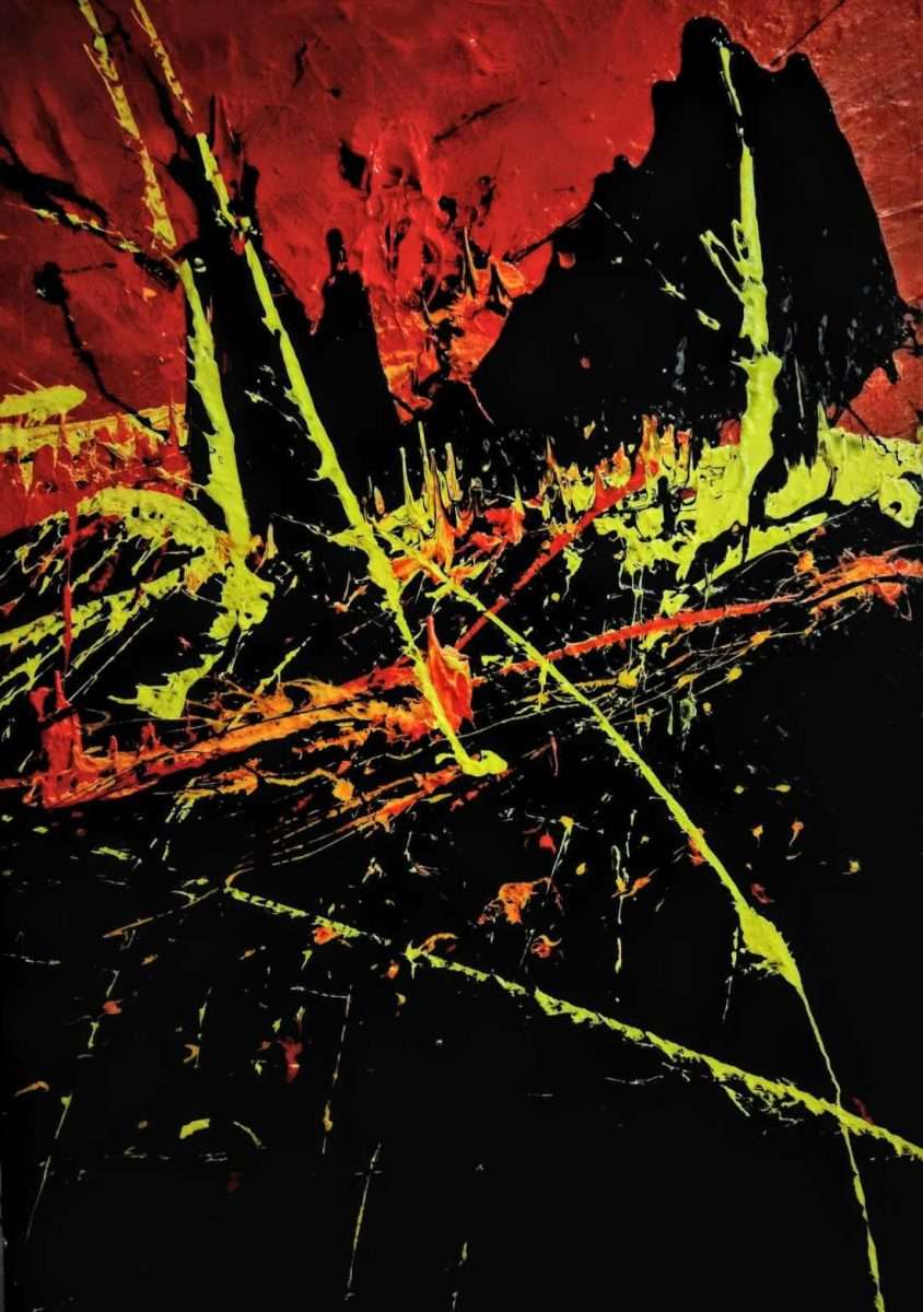 Apstrakcije nam sugestivno dočaravaju trenutak eksplozije zemljinog bijesa koji nadire iz dubine, razarajući sve pred sbom, ostavljajući bolne tragove i ožiljke koji neće nikada zarasti.