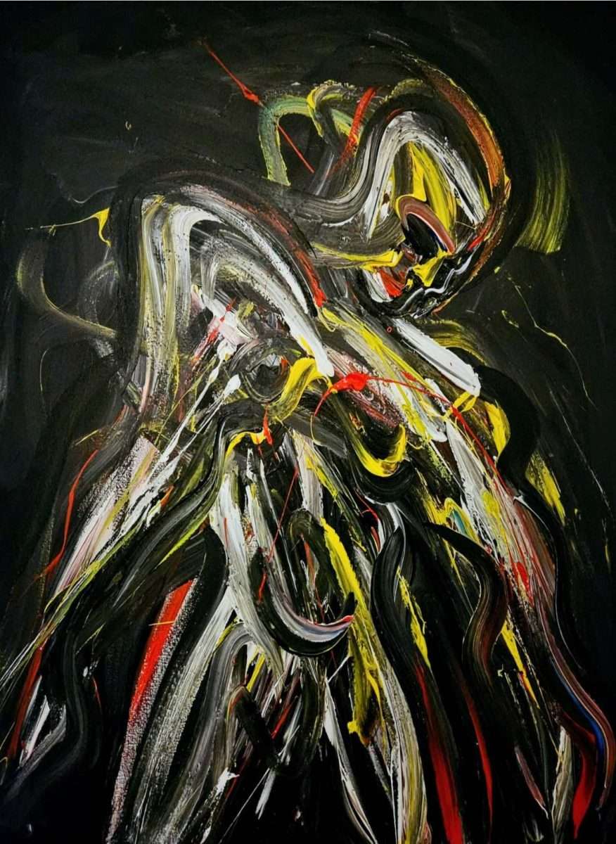 Figure su i dalje zarobljene, omeđene u kolopletima svojih grčevitih zagrljaja, približavanja ili udaljavanja, u brojnim gestama ili pokretima, u neprekidnom gibanju, u polumraku, u tami, svjetlećih obrisa.