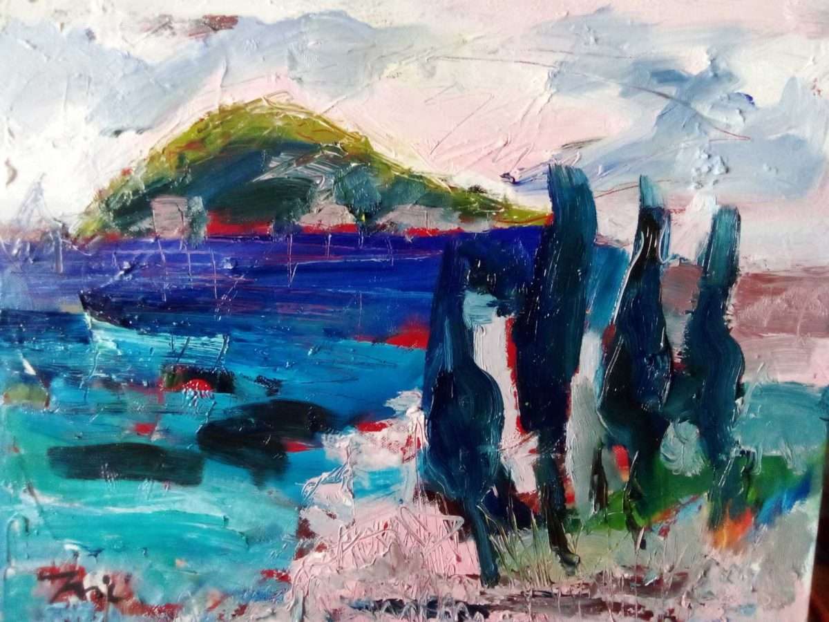 Ponekad razmišljam i ovako. Ivić slika jedan trenutak vremena, kada sve miruje i more i kuće i brodovi i ptice i vjetrovi, kada je sve zastalo samo za trenutak kako bi umjetnik zabilježio na najbolji način, vrijeme koje se više neće ponoviti i vjetrovi će zapuhati na drugu stranu i drveće više neće biti tako visoko i uspravno a i ptice će se dugačije glasati, jedino će kuće na obali ostati iste, same i puste i more će ostati isto, jednako plavo kao i uvijek.