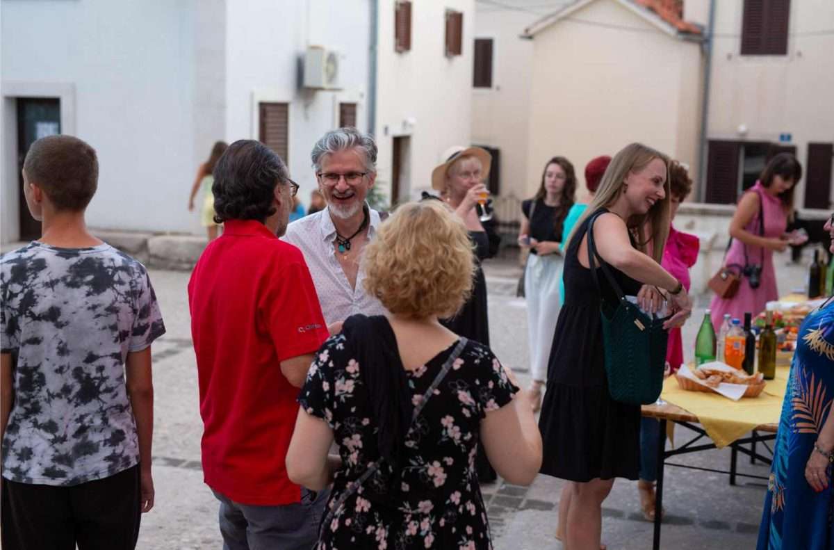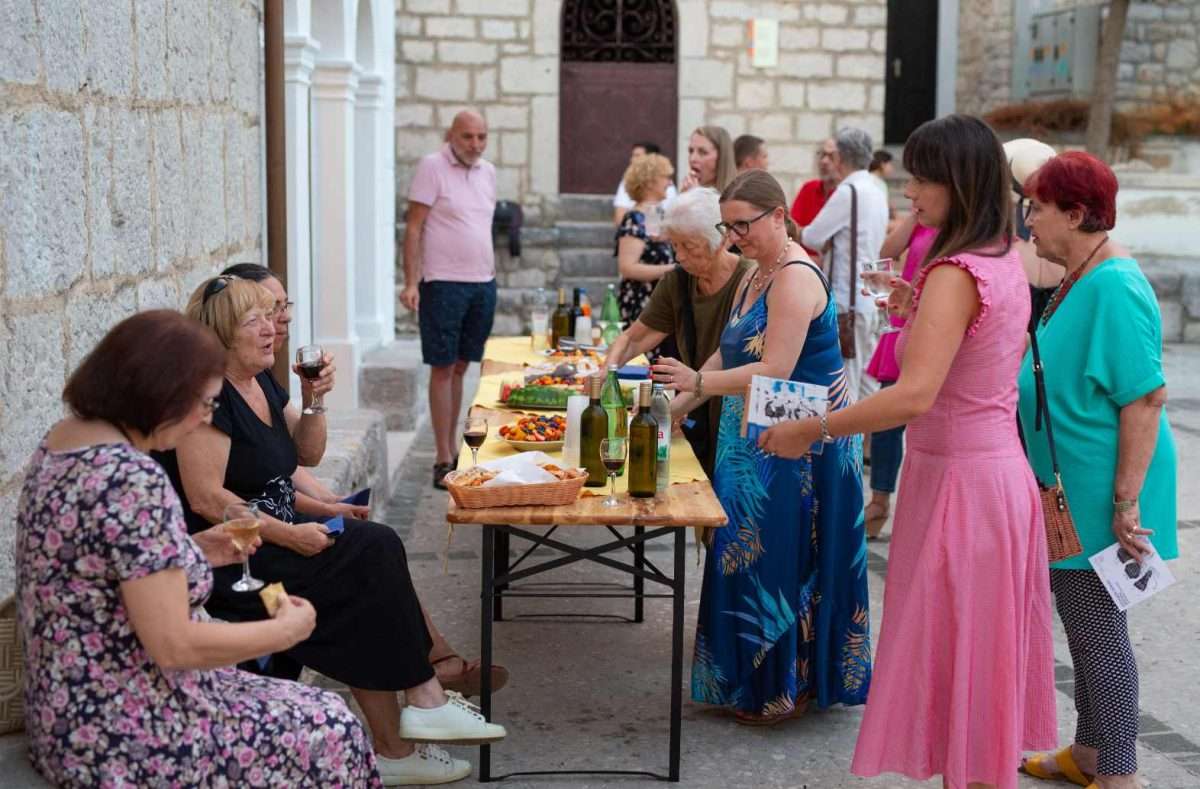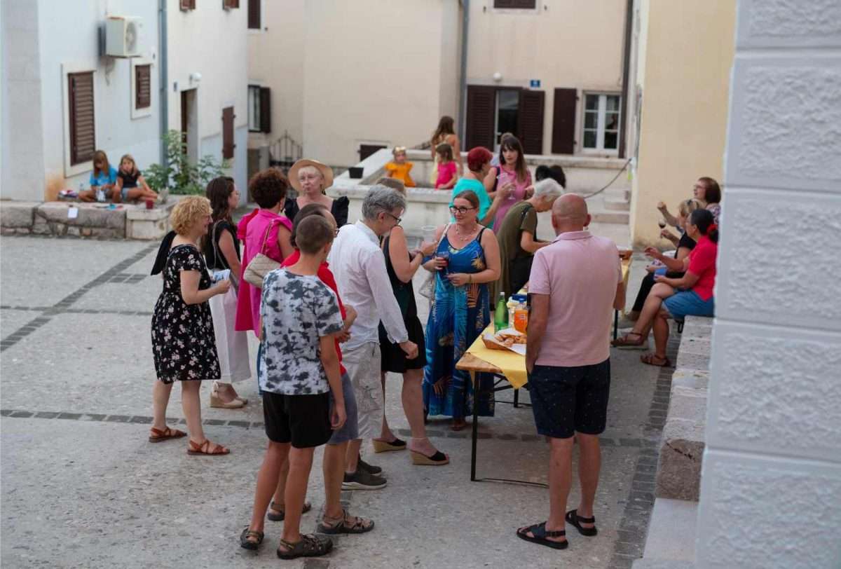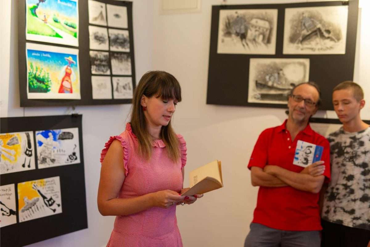 U sklopu svečanog otvorenja, izložbu je predstavila viša kustosica Sonja Švec Španjol koja je istaknula važnost i značaj opusa Drage Gervaisa kao i bogatstvo interpretacije Dubravka Kastrapelija. Htjeti, moći, znati utjeloviti emociju i atmosferu trenutka na najneposredniji način umjetnost je sama po sebi. Hrvatskom književniku Dragi Gervaisu to je prirodno pošlo za rukom već u prvoj zbirci “Čakavski stihovi” izdanoj 1929. godine. Zbirka koja je, uz izmjene i nadopune, doživjela mnoga izdanja pozicionirala ga je među najistaknutije hrvatske dijalektalne autore. Bilo je samo pitanje vremena kada će se susresti opus velikog majstora dijalektalne poezije Drage Gervaisa i slikarski potez ilustratora Dubravka Kastrapelija, naglasila je Švec Španjol. Zadnjih petnaestak godina, akademski umjetnik Dubravko Kastrapeli bavi se ilustriranjem književnih djela od Miguela de Cervantesa, preko Marina Držića pa sve do Ivane Brlić-Mažuranić, a upravo toliko dugo ima na umu i opus Drage Gervaisa, što samo govori koliko dugo je sazrijevala ideja prije negoli se oslobodilo vrijeme za konkretizaciju i vizualizaciju odabranih misli i pjesama. Činjenica da je Drago Gervais svoj opus posvetio rodnom kraju, oslikavajući dijalektom prvenstveno atmosferu svakodnevnog života i karakter običnih ljudi, otvorila je cijeli dijapazon prizora iz primorskog života s naglašenom radnjom i dijalozima čija je sceničnost postala podloga za ilustraciju pojedine pjesme u djelima Dubravka Kastrapelija. Nije lako prenijeti umjetnost pisane riječi u likovni jezik, no kada je poezija toliko živa i scenična, kroz potez autora istančanog senzibiliteta ostvaruje se magična transformacija lirike u ilustraciju. Kao što je Drago Gervais oblikovao svoje pjesme uz dozu toplog i dobronamjernog humora, dok je s ljubavlju i praštanjem opisivao zgode i nezgode malih ljudi u njihovom svakodnevnom životu, tako je i Dubravko Kastrapeli pristupio ilustraciji kroz igru. Inspiriran prvenstveno ozračjem pjesama koje su u sebi nosile čitav spektar emocija od malih radosti i prpošnosti života pa sve do blage tuge i melankolije koja je u prvi plan isticala sjetu u prikazu smiraja života, Kastrapeli je pojedinu pjesmu ilustrirao i po nekoliko puta u različitim tehnikama i na različitim formatima papira. Svaka interpretacija ponudila bi novu svježinu, akcent i dinamiku ostvarenu kroz kolorit ili izostanak istog, oblikovanje volumena, detalja, perspektive te različit pristup u odabiru kadra. Nit poveznica između različitih interpretacija pojedine pjesme leži u specifičnom fontu kojim autor ispisuje stihove, a koji u potpunosti korespondira s ilustracijama, zaključila je Švec Španjol. Umjetnik Dubravko Kastrapeli naglasio je kako mu je srce puno što svoj ciklus napokon predstavlja na Kvarneru, u Omišlju, lokaciji dosada najbližoj Gervaisovoj rodnoj Opatiji. Objasnio je kako ga je Gervaisu privukla njegova emocija, humanost i fokus na običnog čovjeka. Svečano otvorenje uveličala je i odlična autohtona recitacija Gervaisovih pjesama “Polne” i “Morčić” koje je izvela Ema Jedrlinić.
