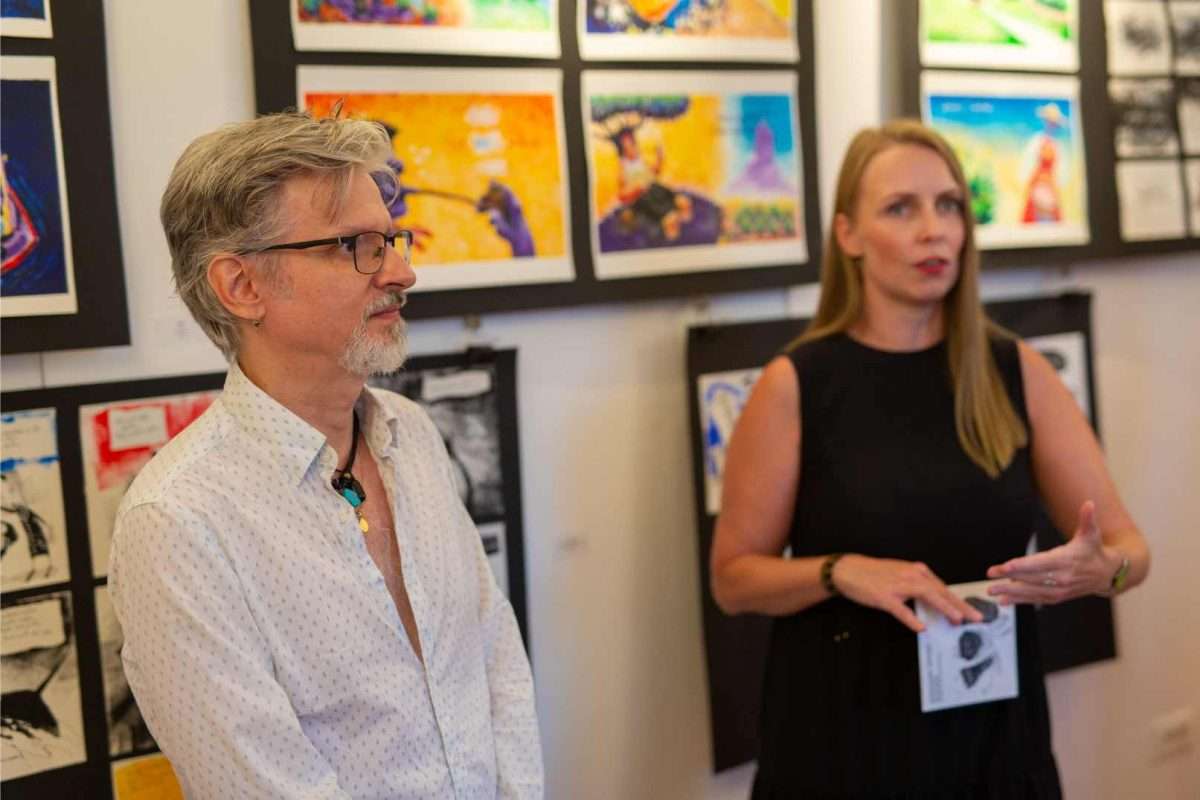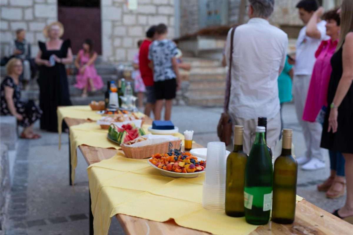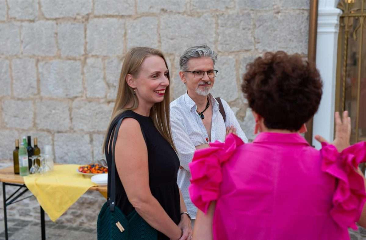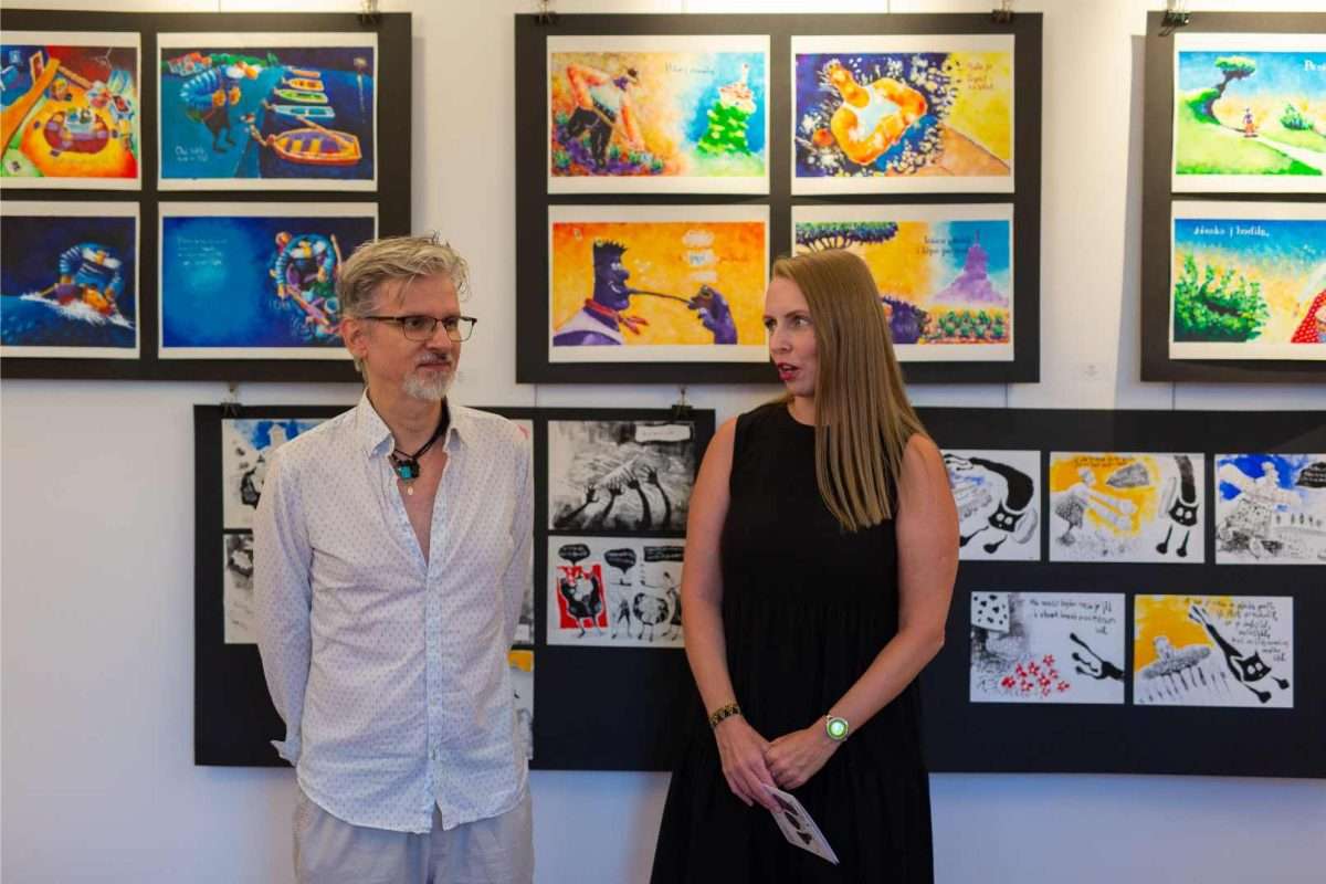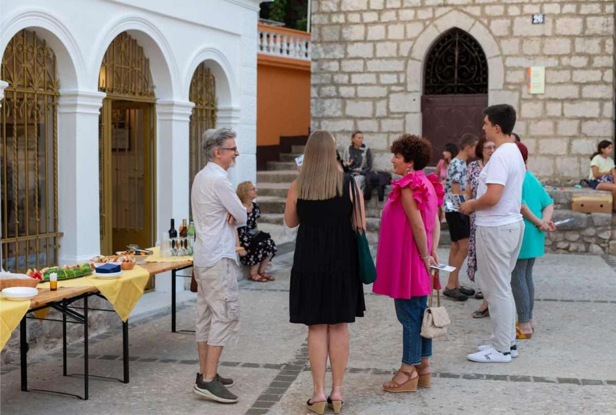 U sklopu svečanog otvorenja, izložbu je predstavila viša kustosica Sonja Švec Španjol koja je istaknula važnost i značaj opusa Drage Gervaisa kao i bogatstvo interpretacije Dubravka Kastrapelija. Htjeti, moći, znati utjeloviti emociju i atmosferu trenutka na najneposredniji način umjetnost je sama po sebi. Hrvatskom književniku Dragi Gervaisu to je prirodno pošlo za rukom već u prvoj zbirci “Čakavski stihovi” izdanoj 1929. godine. Zbirka koja je, uz izmjene i nadopune, doživjela mnoga izdanja pozicionirala ga je među najistaknutije hrvatske dijalektalne autore. Bilo je samo pitanje vremena kada će se susresti opus velikog majstora dijalektalne poezije Drage Gervaisa i slikarski potez ilustratora Dubravka Kastrapelija, naglasila je Švec Španjol. Zadnjih petnaestak godina, akademski umjetnik Dubravko Kastrapeli bavi se ilustriranjem književnih djela od Miguela de Cervantesa, preko Marina Držića pa sve do Ivane Brlić-Mažuranić, a upravo toliko dugo ima na umu i opus Drage Gervaisa, što samo govori koliko dugo je sazrijevala ideja prije negoli se oslobodilo vrijeme za konkretizaciju i vizualizaciju odabranih misli i pjesama. Činjenica da je Drago Gervais svoj opus posvetio rodnom kraju, oslikavajući dijalektom prvenstveno atmosferu svakodnevnog života i karakter običnih ljudi, otvorila je cijeli dijapazon prizora iz primorskog života s naglašenom radnjom i dijalozima čija je sceničnost postala podloga za ilustraciju pojedine pjesme u djelima Dubravka Kastrapelija. Nije lako prenijeti umjetnost pisane riječi u likovni jezik, no kada je poezija toliko živa i scenična, kroz potez autora istančanog senzibiliteta ostvaruje se magična transformacija lirike u ilustraciju. Kao što je Drago Gervais oblikovao svoje pjesme uz dozu toplog i dobronamjernog humora, dok je s ljubavlju i praštanjem opisivao zgode i nezgode malih ljudi u njihovom svakodnevnom životu, tako je i Dubravko Kastrapeli pristupio ilustraciji kroz igru. Inspiriran prvenstveno ozračjem pjesama koje su u sebi nosile čitav spektar emocija od malih radosti i prpošnosti života pa sve do blage tuge i melankolije koja je u prvi plan isticala sjetu u prikazu smiraja života, Kastrapeli je pojedinu pjesmu ilustrirao i po nekoliko puta u različitim tehnikama i na različitim formatima papira. Svaka interpretacija ponudila bi novu svježinu, akcent i dinamiku ostvarenu kroz kolorit ili izostanak istog, oblikovanje volumena, detalja, perspektive te različit pristup u odabiru kadra. Nit poveznica između različitih interpretacija pojedine pjesme leži u specifičnom fontu kojim autor ispisuje stihove, a koji u potpunosti korespondira s ilustracijama, zaključila je Švec Španjol. Umjetnik Dubravko Kastrapeli naglasio je kako mu je srce puno što svoj ciklus napokon predstavlja na Kvarneru, u Omišlju, lokaciji dosada najbližoj Gervaisovoj rodnoj Opatiji. Objasnio je kako ga je Gervaisu privukla njegova emocija, humanost i fokus na običnog čovjeka. Svečano otvorenje uveličala je i odlična autohtona recitacija Gervaisovih pjesama “Polne” i “Morčić” koje je izvela Ema Jedrlinić.