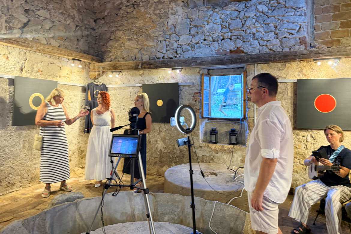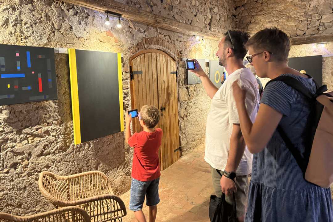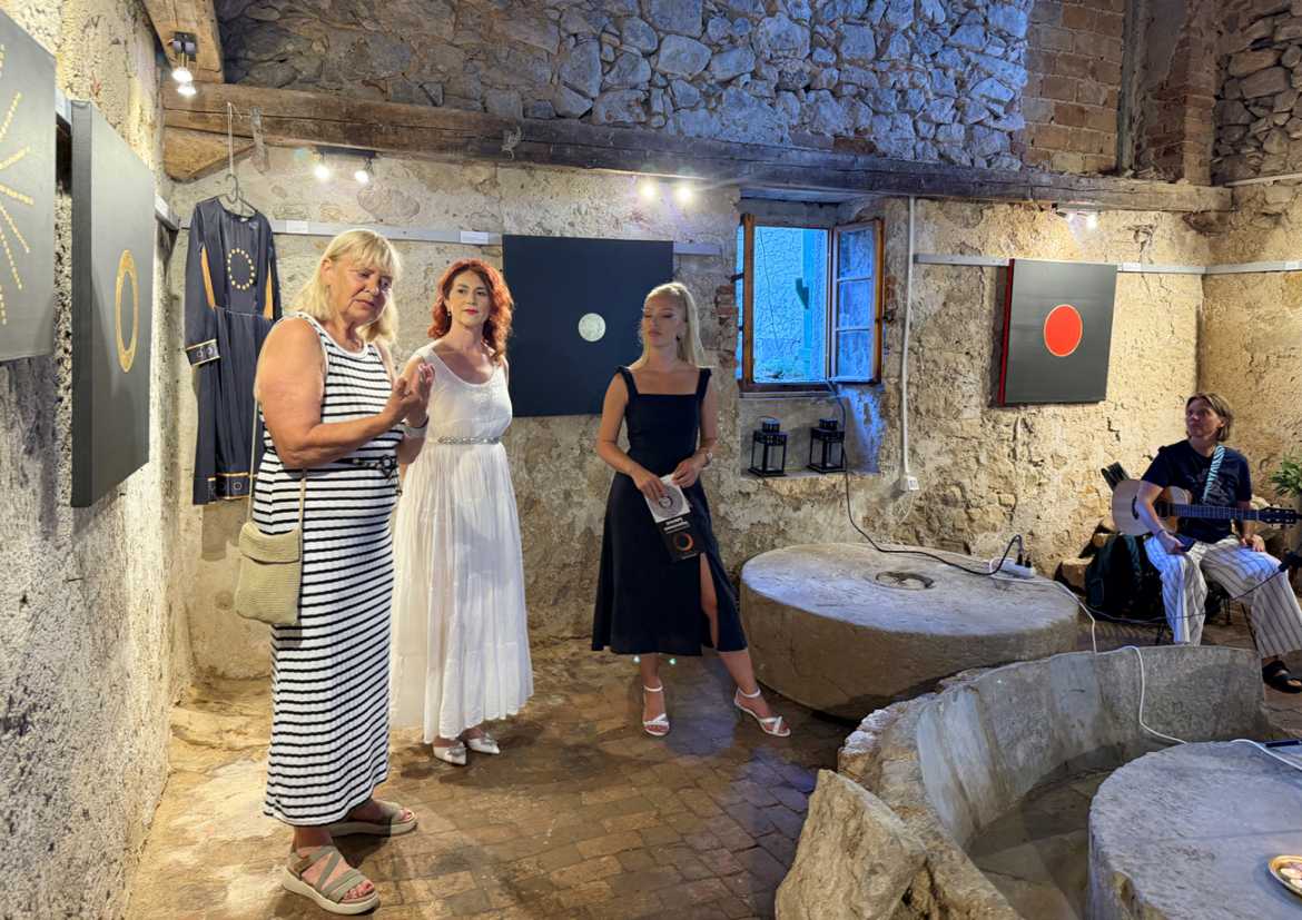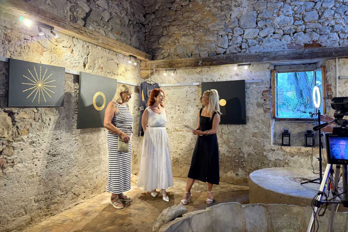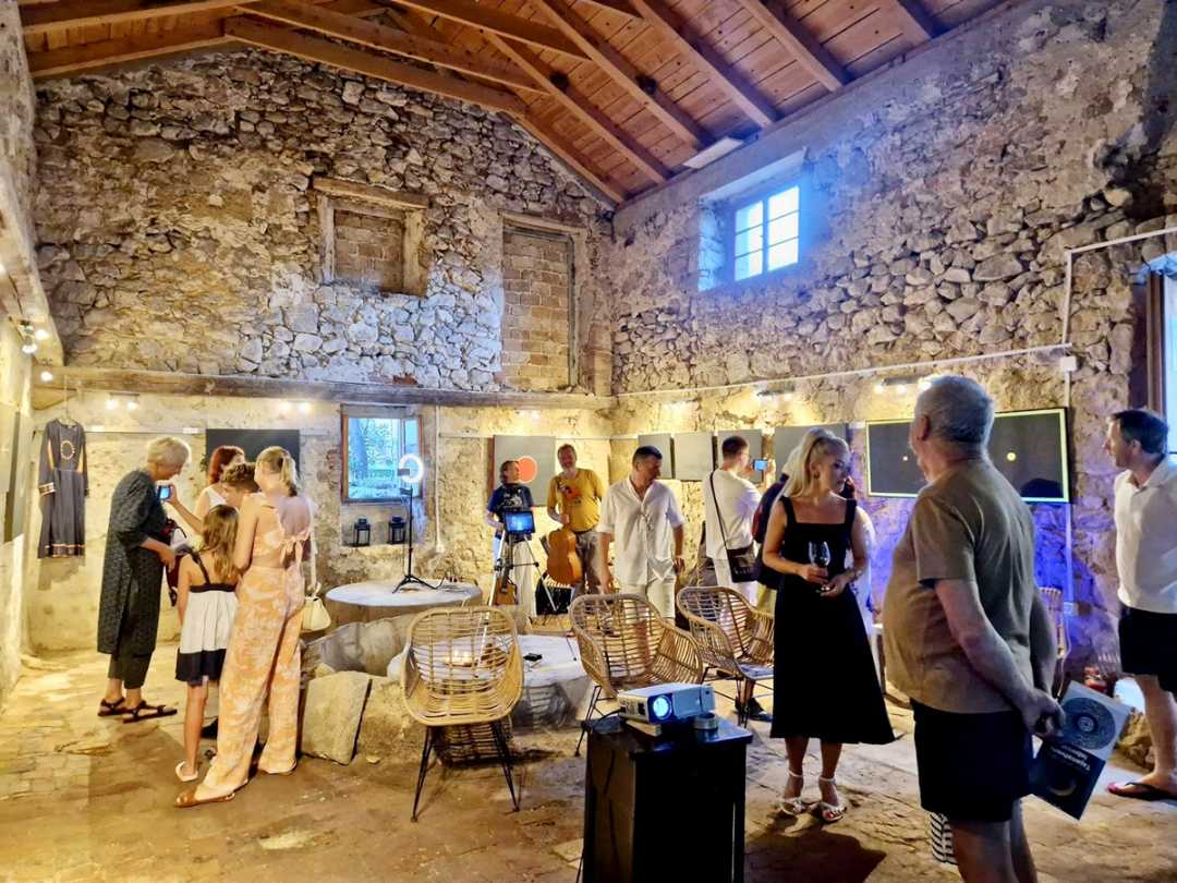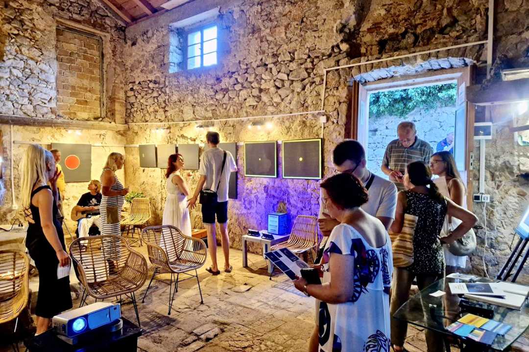 U ispunjenoj Galeriji Uljara – Tuorić u Nerezinama otvorena je izložba Dijane Nazor Čorda naziva Tajanstveni labirinti, 9. kolovoza 2025.