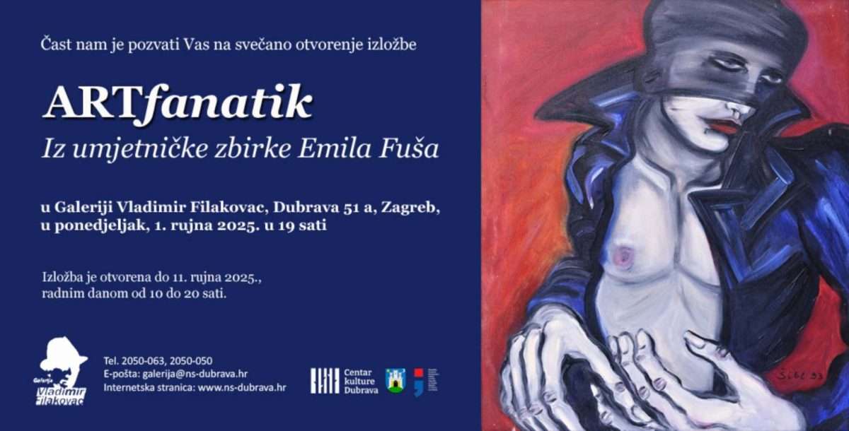 U Galeriji Vladimir Filakovac, Dubrava 51 a, 1. rujna 2025. u 19 sati otvara se izložba ARTfanatik – iz umjetničke zbirke Emila Fuša