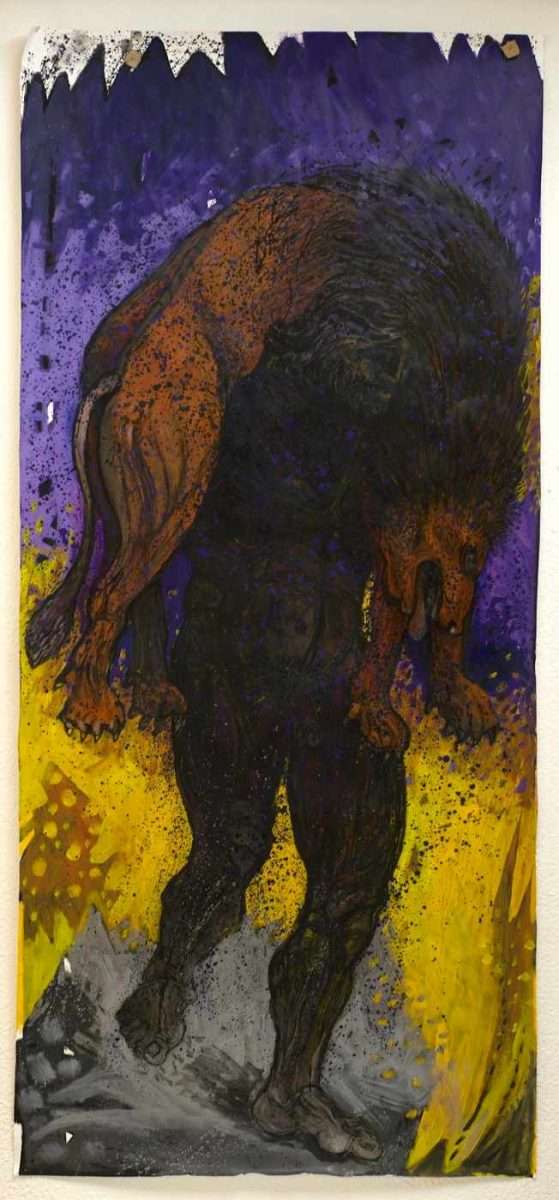 Džeko Hodžić präsentiert zwei Werke aus dem Zyklus „Mythische Bilder“. Eines bezieht sich auf Herakles, das andere auf Itylos/Itis (griech. `Ιτυλος, lat. Itylus). Herakles ist ein Held der griechischen Mythologie (in der römischen Mythologie: Herkules). Er wurde als Halbgott geboren – Sohn des Zeus und der Sterblichen Alkmene. Alkmene gebar sowohl den Halbgott Herakles als auch den Sterblichen Ifikles. Einen der Söhne nannte sie Herakles („Ruhm der Hera“), um den Zorn der Göttin Hera zu besänftigen. Doch Hera, seine Stiefmutter, mochte ihn nicht. Sie schickte Schlangen in seine Wiege, doch Herakles erwürgte sie mit bloßen Händen. Als Halbgott musste er zwölf Aufgaben erfüllen, um auf den Olymp aufzusteigen und Unsterblichkeit zu erlangen. Džeko Hodžić interpretiert in seinem Werk das Motiv des Sieges über den nemeischen Löwen – eine der berühmten Aufgaben. Seine malerische Darstellung zeigt den Moment nach dem Kampf, denn das Fell des Löwen war so dick, dass keine Waffe es durchdringen konnte; nur die menschliche Hand konnte ihn töten. Herakles erwürgte ihn mit seiner gewaltigen Kraft. Laut Legende war es die Göttin Athene, verkleidet als alte Frau, die ihm riet, die Löwenhaut mit den eigenen Klauen des Tieres zu entfernen. Nachdem er die Aufgabe erfüllt hatte, trug er das unverwundbare Fell als seine Rüstung. Herakles hatte sowohl männliche als auch weibliche Liebhaber. Er war viermal verheiratet und hatte zahlreiche Nachkommen. Unter seinen Liebhabern war auch Philoctetes, ein berühmter Kämpfer im Trojanischen Krieg. Die zwölf erfüllten Aufgaben des Herakles erzählen von seiner Ausdauer bei der Verwirklichung seines Lebensziels. Viele seiner Taten hatten einen humanitären Charakter.