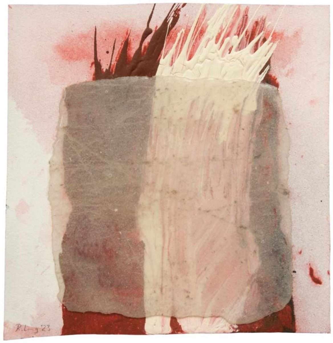 Robert Lang’s Reihe kleinerer Werke sind in Mischtechnik ausgeführt: Gouache, Acryl, Öl, Aquarell, Bleistift, Papier, Klebeband, Silikon… Alle sind in kleineren Formaten, sodass sie auf verschiedene Weise präsentiert werden können, ohne ihre Aura zu verlieren. Der Künstler erlebt die Situationen, in die wir alle gemeinsam mit ihm eingetaucht sind, offensichtlich intensiv. Den Ausdruck des Entsetzens über kriegerische Ereignisse und die Ablehnung proklamierter offizieller politischer Positionen bringt er auf dramatische und eindrucksvolle Weise zum Ausdruck. Alle Werke gehören zum Zyklus „Blutzoll“. Auf abstrakte, nur gelegentlich symbolische Weise versetzt sich der Künstler in die Zustände derer, die direkt auf dem Schlachtfeld kämpfen und allzu oft sterben. Natürlich befinden sich die Auftraggeber, Führer und Interessenskreise nicht auf den Schlachtfeldern, sondern in kostspieligen, geschützten Räumen. Diesen vielfältigen Albtraum bezahlen wir, die einfachen Bewohner des Blauen Planeten. Doch wir müssen uns bewusst machen: Wie schon Voltaire sagte: „Keine Schneeflocke in einer Lawine fühlt sich je verantwortlich.“