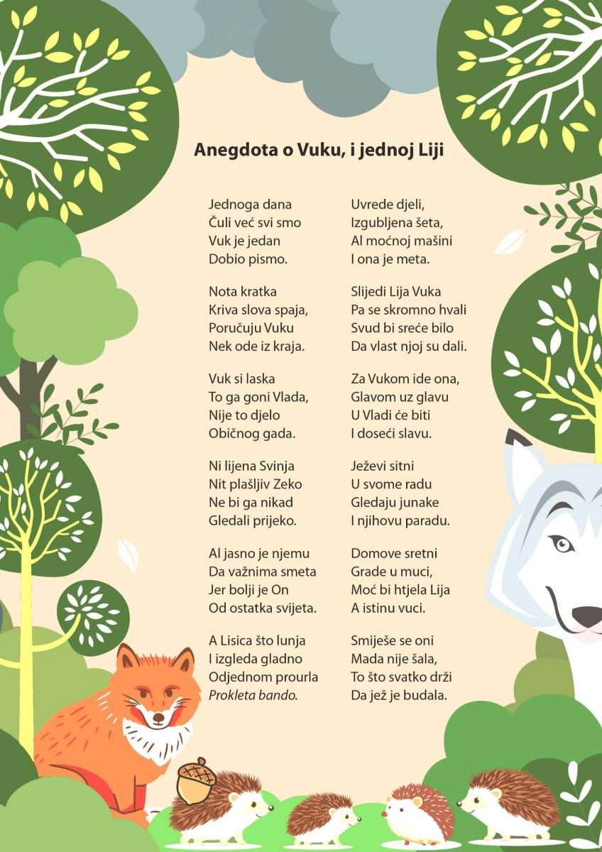 Rimovani stihovi o Vuku, i jednoj Liji kratka su alegorija. Potaknuta, ali ne i iscrpljena društvenim zbivanjima, satirizira opće fenomene ljudske naravi. Bavi se pitanjem (društvene) slave, (političke) sile i (ljudske) moći.