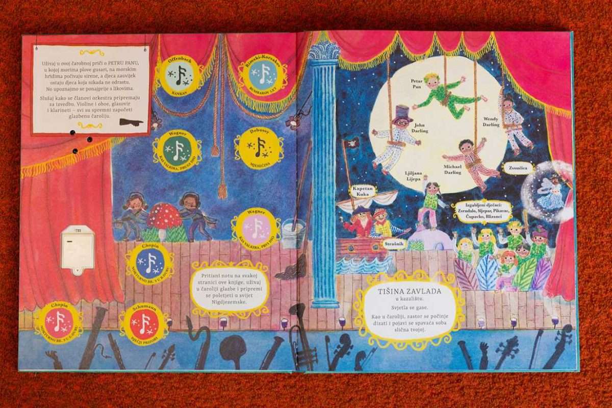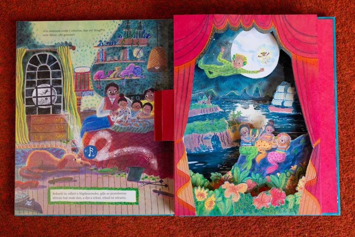 - Svevremena priča o dječaku koji ne želi odrasti blista u novoj, raskošno ilustriranoj glazbenoj slikovnici s pop-up kazališnom pozornicom koja najmlađe čitatelje obogaćuje jedinstvenim iskustvom čitanja, gledanja, slušanja i osjećanja
