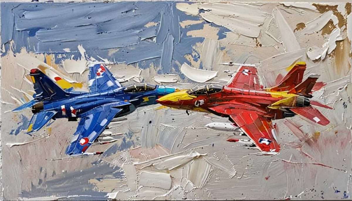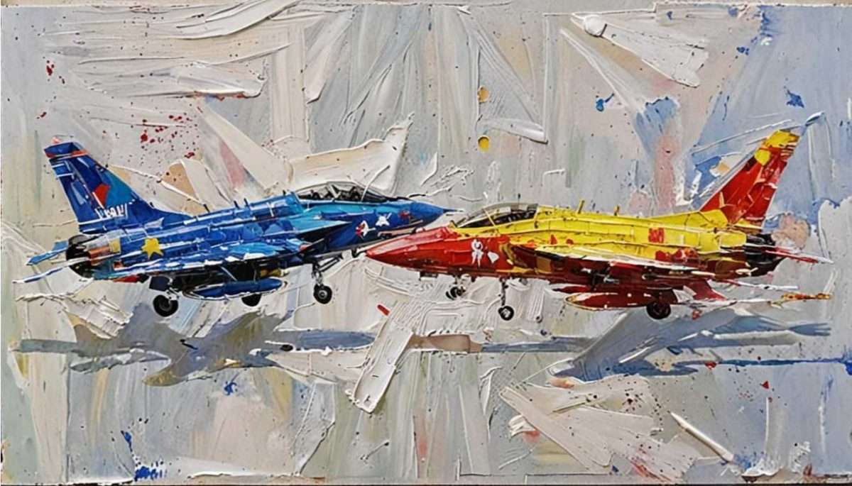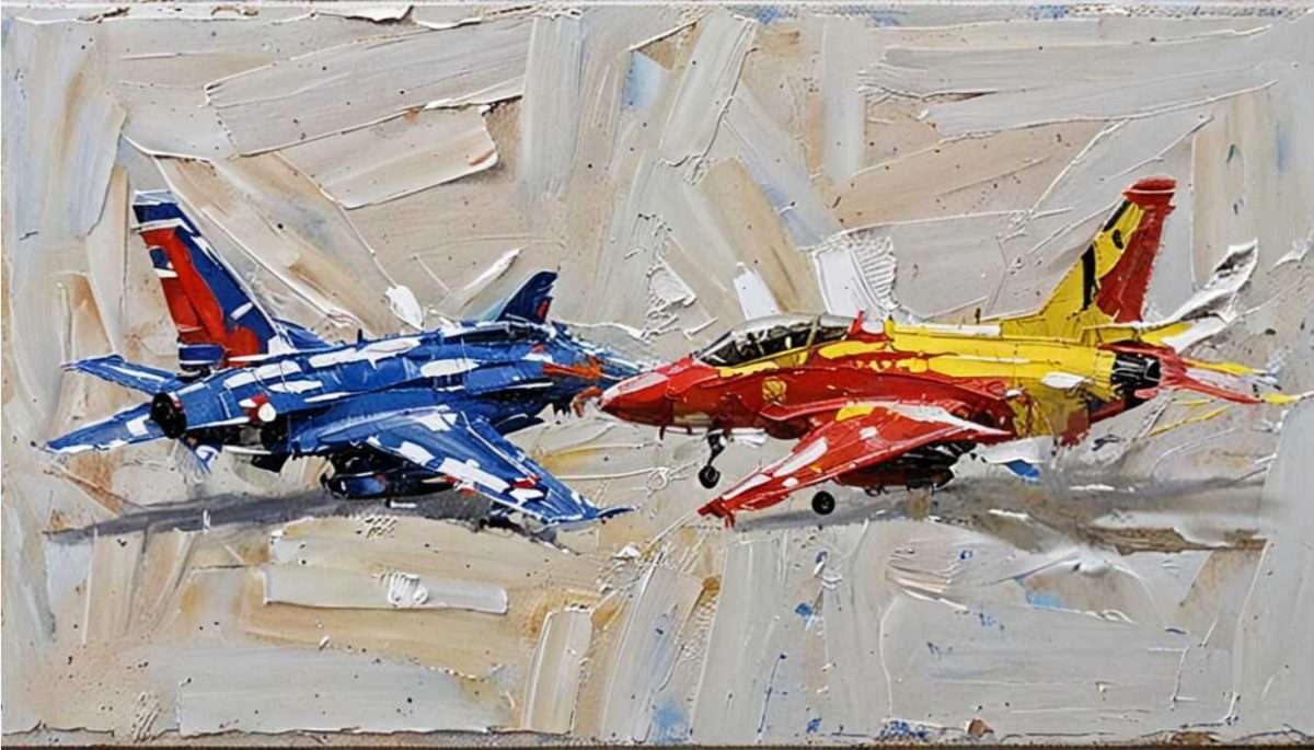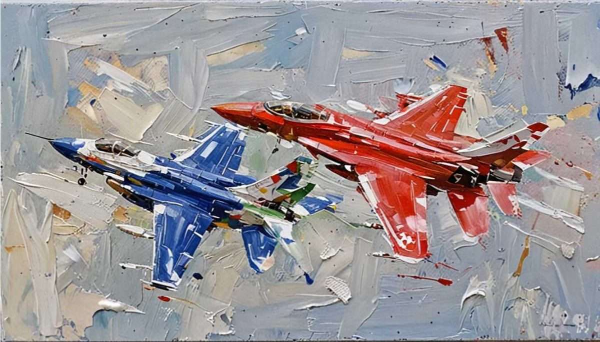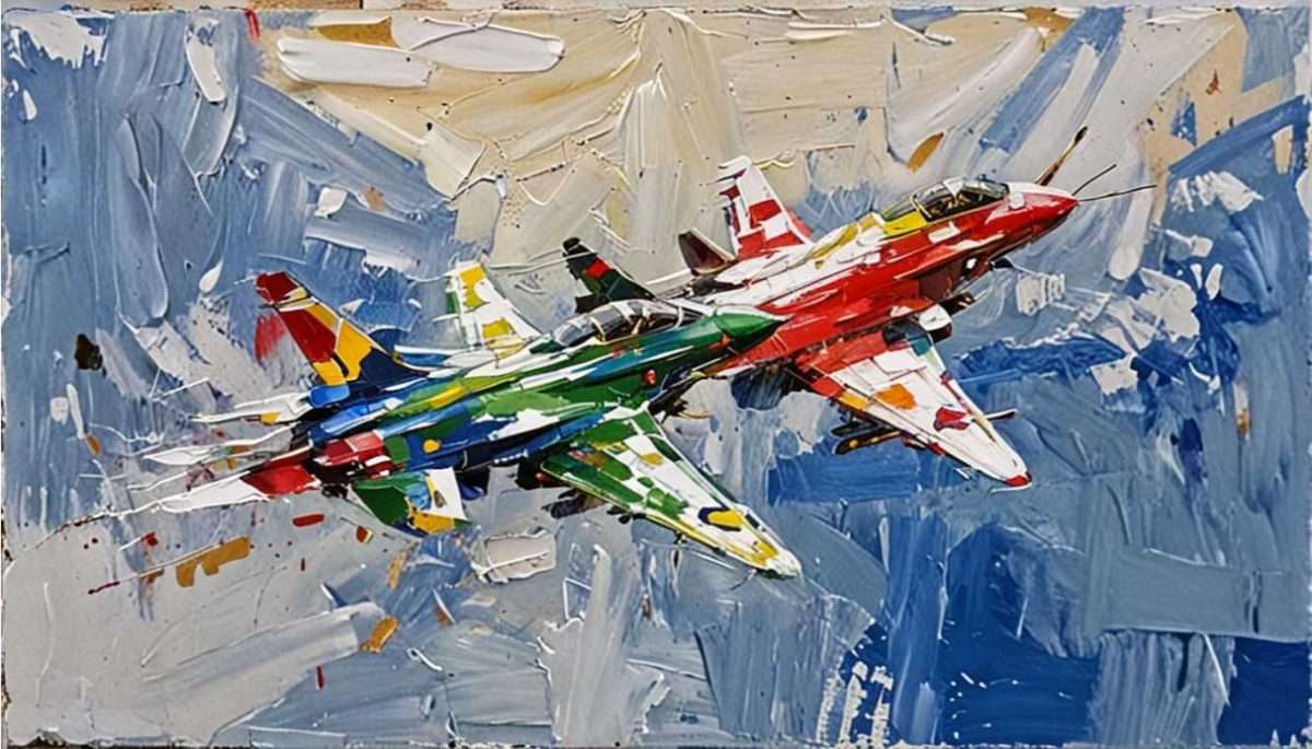-Ne mogu se oteti dojmu svakodnevnice, koja je ispunjena ratnim pokličima, vijestima o rafalima i drugim ubojitim mašinama. Puni su mediji divljenju tim monstrumima, pa iako sam ja barem 90%-tni pacifista, možda izazovem divljenje ovim likovnim uratkom. Posebno su mi impresivne cijene borbenih zrakoplova koje se kreću između 70 – 140 milijuna dolara.