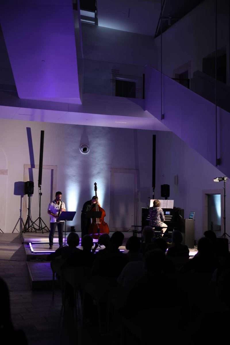 Božičeviću su se pridružila dvojica uglednih nizozemskih jazz glazbenika – Ben van Gelder, jedan od najistaknutijih alt–saksofonista svoje generacije i profesor na Konzervatoriju u Amsterdamu, te Tijs Klaassen, kontrabasist mlađe generacije formiran u Amsterdamu i Philadelphiji, aktivan na nizozemskoj i međunarodnoj sceni. Njihova izvrsna suradnja započela je u amsterdamskom OrgelParku, jednom od rijetkih europskih prostora posvećenih inovativnim pristupima orguljaškoj umjetnosti. Ondje je prvi put izveden ovaj koncept, a zadarska izvedba donijela je nastavak te priče – potvrdivši koliko snažan i plodan može biti spoj klasičnih orgulja i jazz izričaja. Uz izvrsnu glazbu, doživljaju koncerta doprinio je i veoma interesantan dizajn svjetla grčkog umjetnika Hristosa Tolisa.
