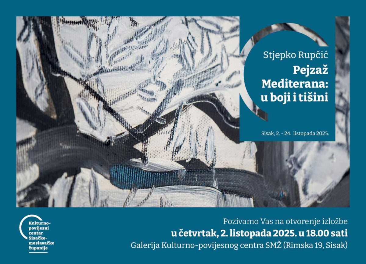 U galeriji Kulturno-povijesnog centra Sisačko-moslavačke županije u četvrtak, 2. listopada u 18 sati otvara se tematska izložba s akcentom na recentna djela akademskog slikara Stjepka Rupčića. Na izložbi pod nazivom “Pejzaž Mediterana: u boji i tišini” akademski slikar Stjepko Rupčić predstavlja se s ukupno 40 slika izvedenih u tehnici ulja na platnu većeg formata nastalih 2025. godine.