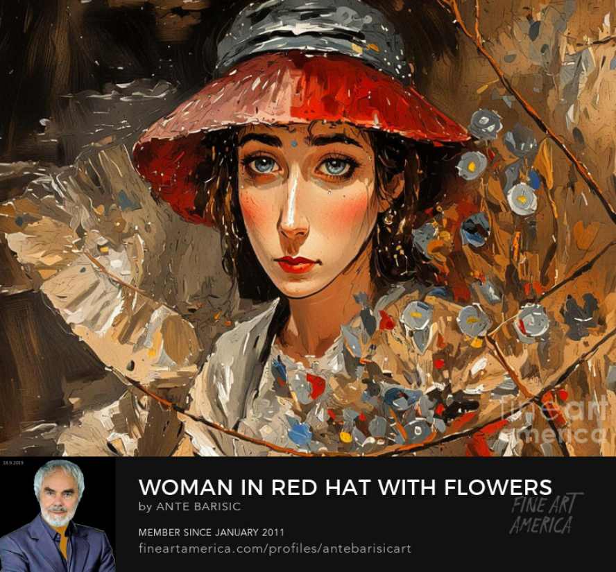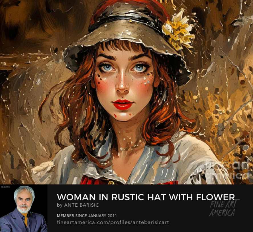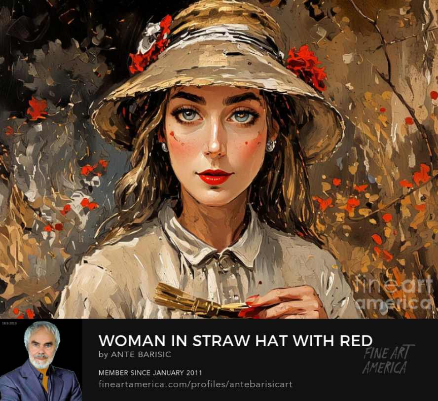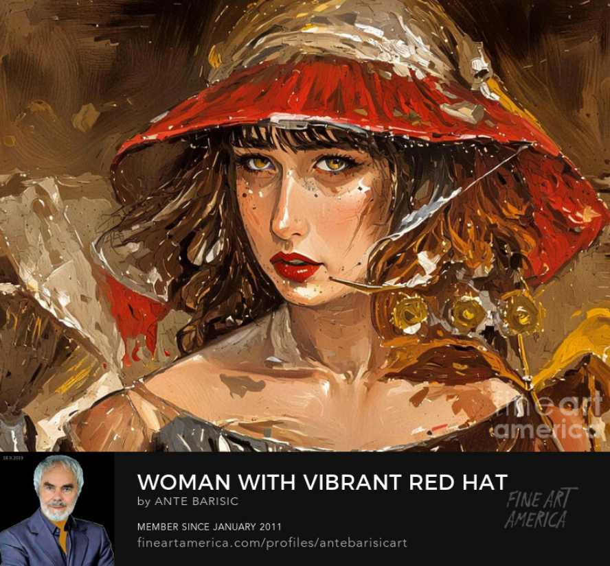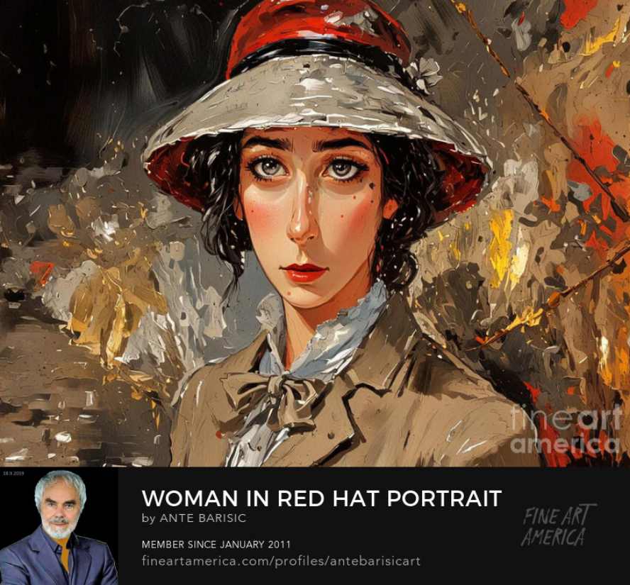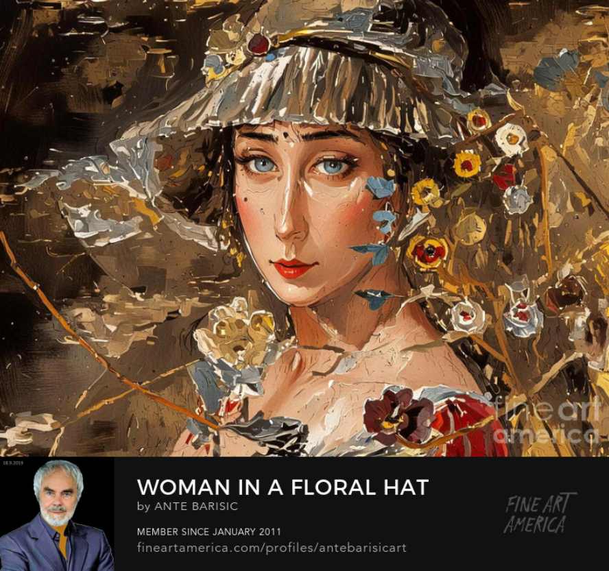 Goapodine Barišić, novi ciklus u digitalnoj tehnici, Woman with a hat, Žena sa šeširom, studija ženskog lica.