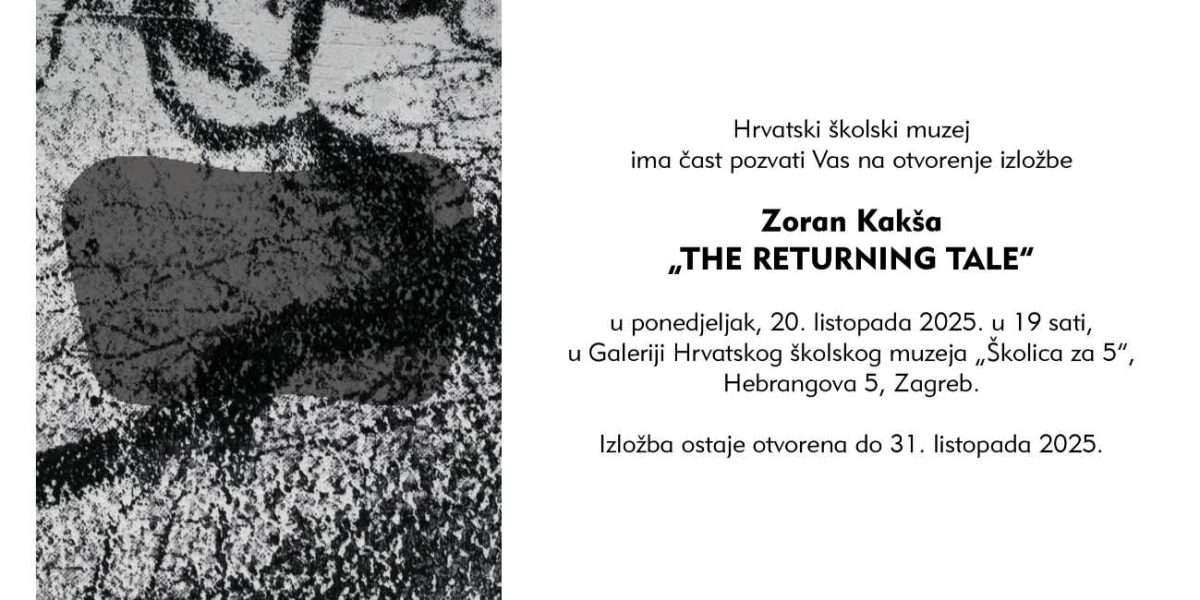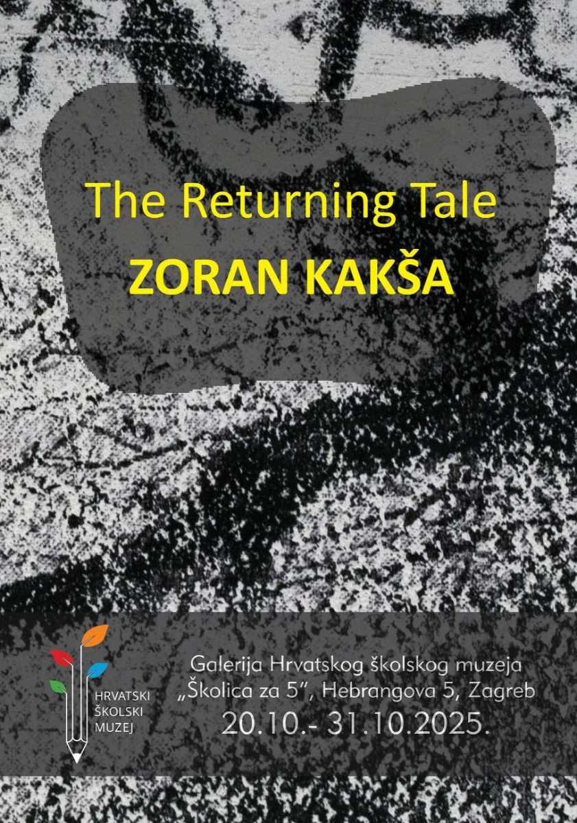 Otvorenje samostalne izložbe „The Returning Tale“ akademskog umjetnika Zorana Kakše održati će se u ponedjeljak, 20. listopada 2025. u 19 sati, u galeriji Hrvatskog školskog muzeja „Školica za 5“