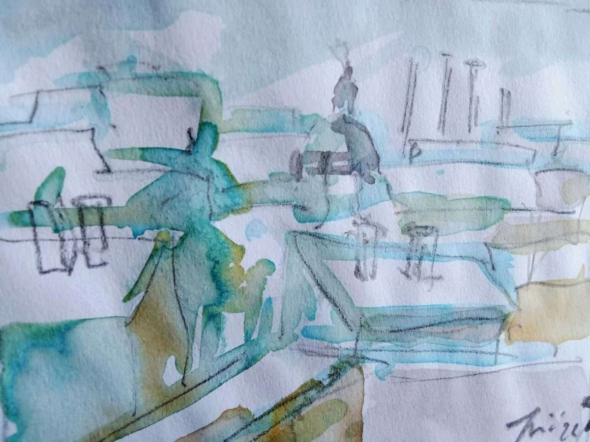 Sve je vrlo prepoznatljivo, svi elementi središta grada, svi motivi koje pamtimo cijeli život. U ovom ciklusu oživljeni su svi ti magični prizori u akvarelu s nekoliko brzih, vještih poteza slikara.