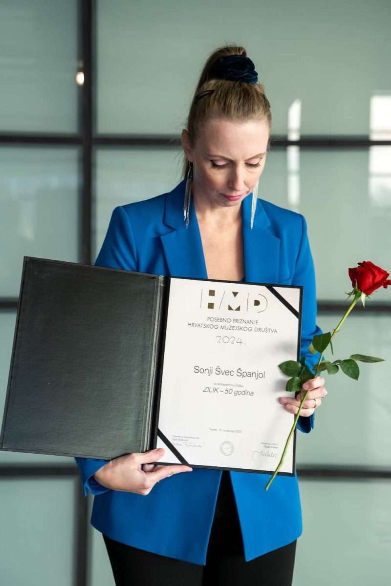 U sklopu svečane dodjele, nezavisna viša kustosica Sonja Švec Španjol dobila je Posebno priznanje za realiziranu izložbu za izložbu “ZILIK – 50 godina”. Nagradu je uručio član Izvršnog odbora HMD-a Davor Špoljar, a nagradu je preuzela autorica i kustosica izložbe Sonja Švec Španjol. Ovo priznanje je od iznimnog značenja za autoricu, jer je riječ o priznanju za izložbu čiji organizator nije ustanova u kulturi već socijalna ustanova Centar za pružanje usluga u zajednici Vladimir Nazor. Kako je organizatoru ZILIK-a umjetnička djelatnost sekundarna, a ne primarna djelatnost, izazov organizacije i realizacije ove opsežne i bogate izložbe bio je daleko teži i izazovniji nego ustanovama u kulturi. Naime, nezavisna viša kustosica Sonja Švec Španjol nije imala na raspolaganju svu infrastrukturu i profesionalnu podršku koju uobičajeno imaju kolege unutar muzeja i galerija kao što su adekvatan vlastiti izložbeni prostor, stručna podrška muzejskih tehničara i raspodjela posla među kolegama kustosima iz matične kuće, te PR i marketing ustanove, već je sav profesionalan posao bio na jednoj osobi, a obuhvaćao je opsežno istraživanje dokumentacije od osnutka 1974. godine do danas, pregled fundusa koji broji više od 2100 umjetnina, selekciju i pripremu izložbe koja broji 150 radova stotinu umjetnika i interpretira pola stoljeća djelovanja ZILIK-a (Zimske likovne kolonije), a potom i samostalno osmišljavanje likovnog postava, postavljanje izložbe i cjelokupni PR i marketing obilježavanja pola stoljeća ZILIK-a opsežnom i bogatom izložbom iz fundusa koja broji 150 radova stotinu umjetnika. Iako organizator ove izložbe nije muzejska ustanova, cjelokupni kolektiv Centra je djelovao u cilju kvalitetne realizacije projekta, te je veliku pomoć u sklopu pripreme i realizacije ove izložbe autorica imala od strane organizatora, tj. zaposlenika Centra za pružanje usluga u zajednici Vladimir Nazor u Karlovcu, ponajviše Martine Prahović i tehničkog osoblja dok su se odgajatelji/ice i ostali zaposlenici Centra posvetili pripremi i realizaciji sadržaja sa štićenicima Centra u sklopu svečanog otvorenja 50. ZILIK-a.
