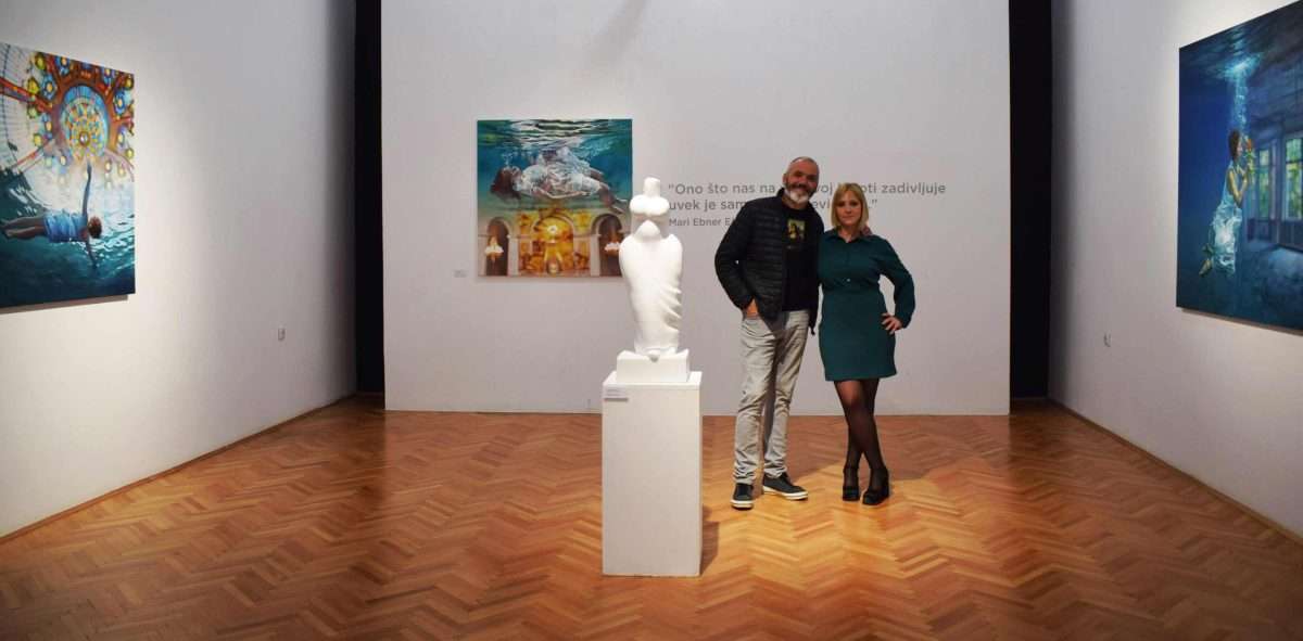 Kada se susretnu, ova dva medija uspostavljaju treći, zajednički prostor — prostor dijaloga tijela, materije i vremena. Kod Živićeve, voda ukida gravitaciju i pretvara tijelo u čistu senzaciju. Kod Hranuellija, čvrsta materija prerasta u lakoću koja prkosi svojoj prirodi. Svako djelo nosi sopstveni ritam, ali tek zajedno otkrivaju suštinu: trenutak kada se fizičko razgrađuje, a figura postaje simbol, tišina, trag postojanja. U tom međuprostoru, u dijalogu slike i skulpture, prolazno dobija dimenziju trajnog, a materijalno postaje metafizičko. Izložba „U dijalogu“ tako ne prikazuje samo dva umjetnička svijeta — ona ih spaja u jedinstven razgovor u kojem pokret i tišina, voda i kamen, unutrašnje i spoljašnje postaju harmoničan, zajednički jezik.