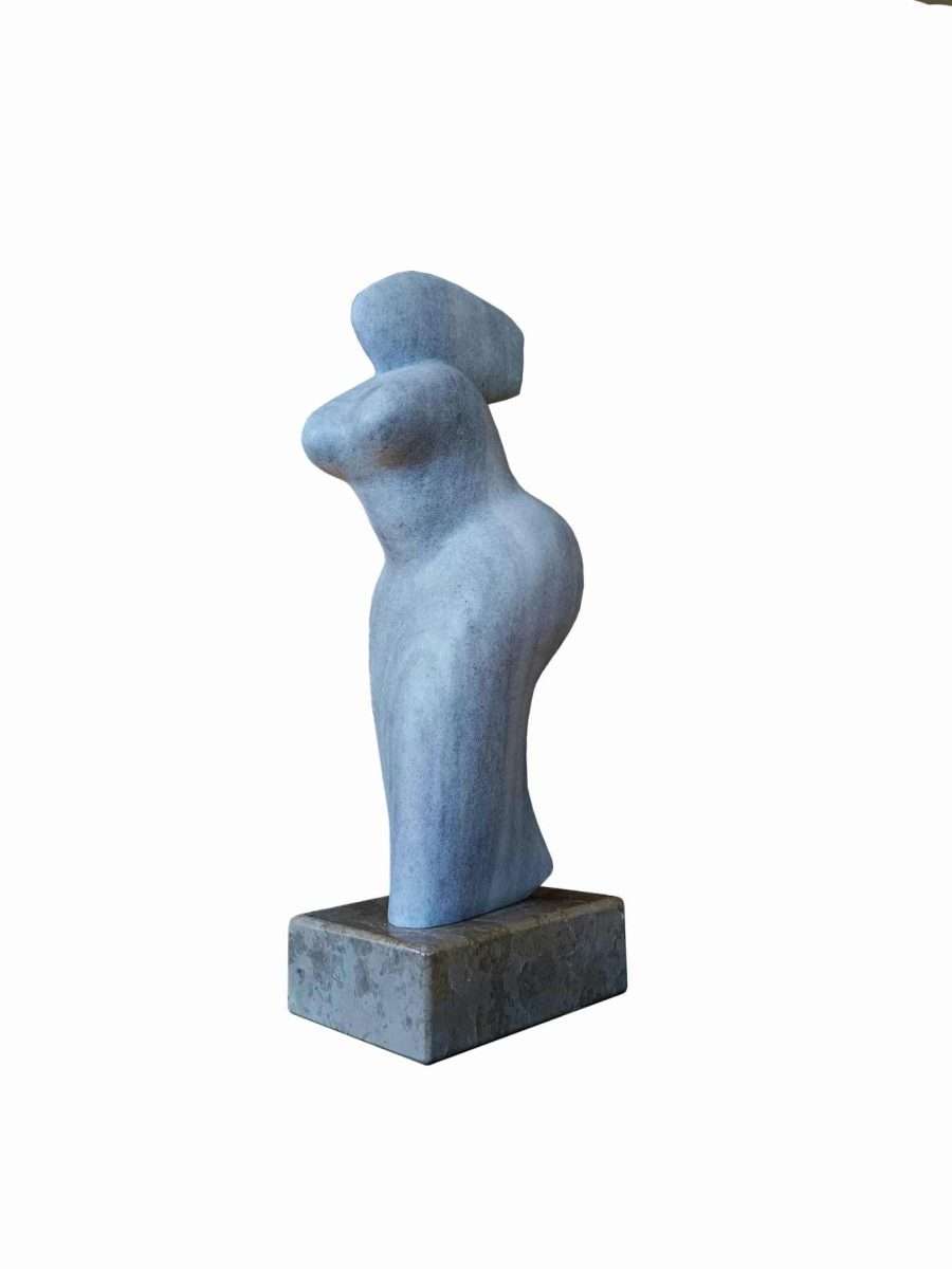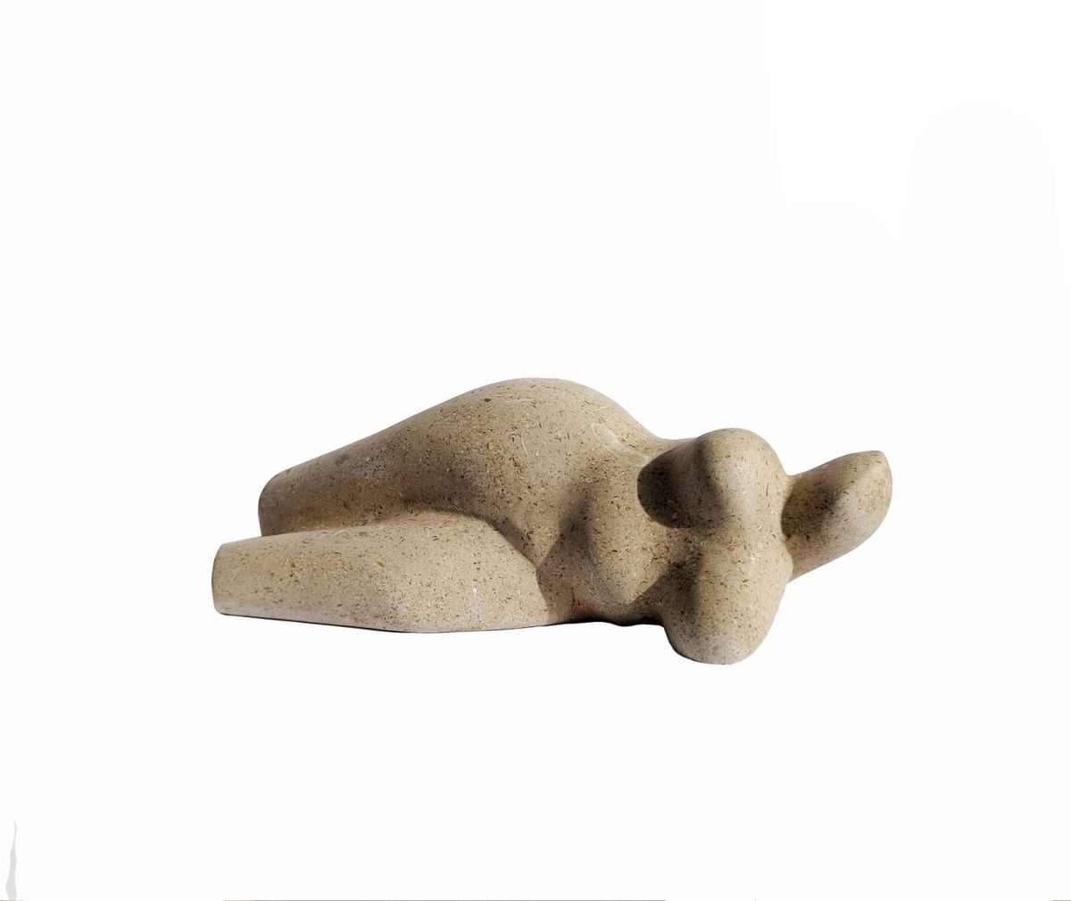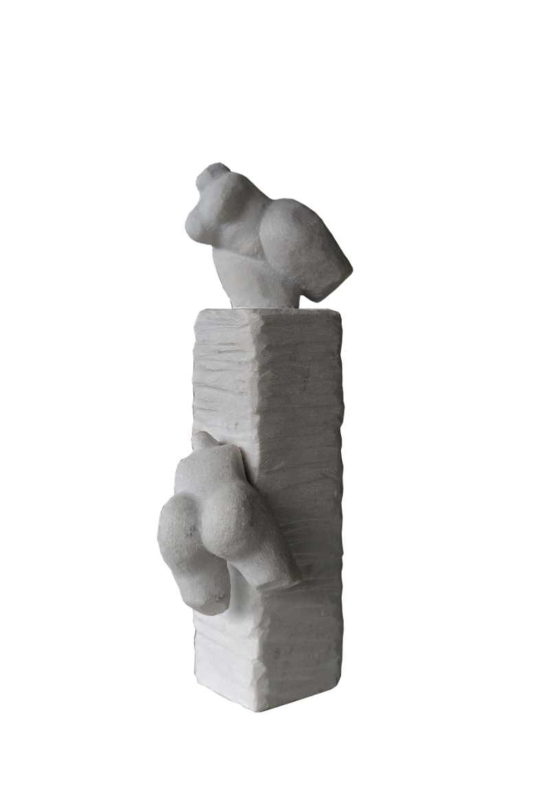 Nasuprot toj fluidnosti, Hranuellijeve kamene skulpture donose drugi glas dijaloga — čvrst, ali neočekivano pokretan. Njegove figure uhvaćene su u kratkoj milisekundi kretanja, u prijelazu između zamaha i smiraja. Kao da materijal gubi svoju težinu i pretvara se u energiju, ritam, zamah. Kamen prestaje biti statika i postaje zapis pokreta, „screenshot“ trenutka u kojem materija nakratko diše.