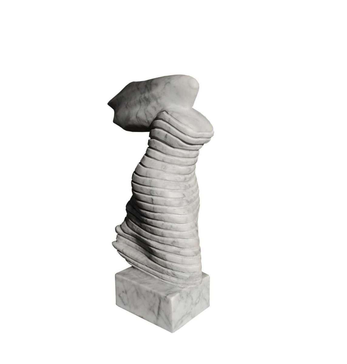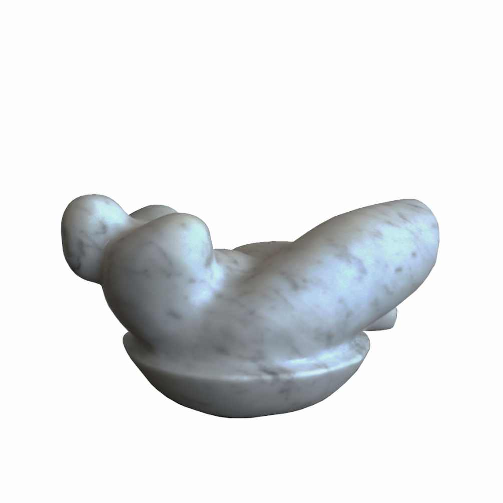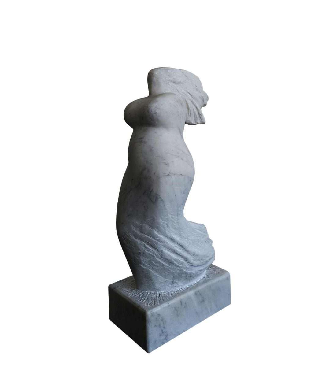 Nasuprot toj fluidnosti, Hranuellijeve kamene skulpture donose drugi glas dijaloga — čvrst, ali neočekivano pokretan. Njegove figure uhvaćene su u kratkoj milisekundi kretanja, u prijelazu između zamaha i smiraja. Kao da materijal gubi svoju težinu i pretvara se u energiju, ritam, zamah. Kamen prestaje biti statika i postaje zapis pokreta, „screenshot“ trenutka u kojem materija nakratko diše.
