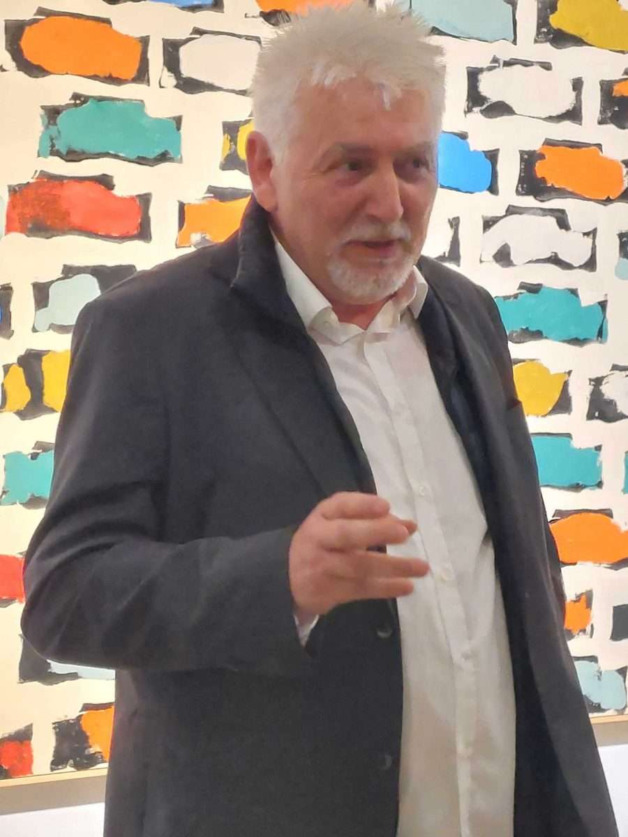 Josip Ivanović na vrlo velikim formatima, u akrilu, donosi pred nas zagonetne kompozicije mnoštva istih ili jednakih u prostoru koji je na svoj način lijep i pogodan za život.
