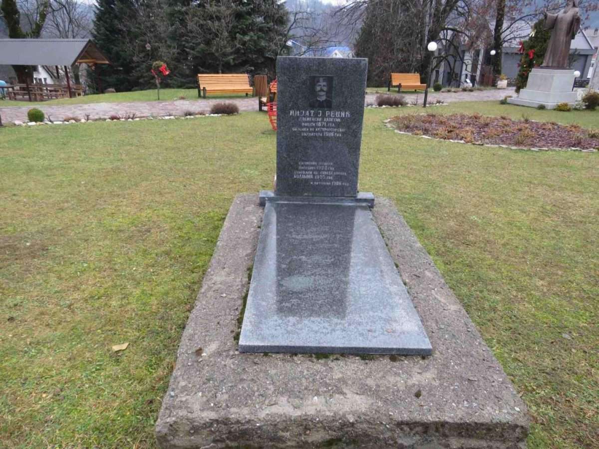 Ispred crkve nekoliko lijepo uređenih grobova. Pažnju mi posebno privlači jedan. Grob postavljen krajem 1903. godine za plemenskog kapetana kolašinske kapetanije Moračko-vasojevićske oblasti Knjaževine Crne Gore: Mijat J. Redžić. Dotadašnji kapetan kapetanije Rečinske. Godine 1916. austrougarski okupator ga je objesio u Kolašinu. U ovom kraju sloboda se oduvijek plaćala onim najvrijednijim životima i krvlju.