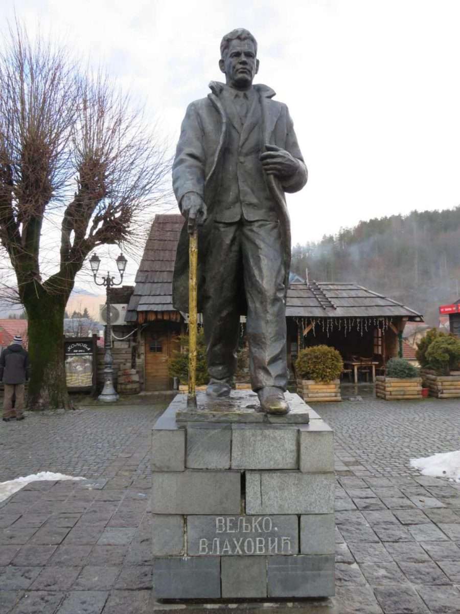 Pored informativne table, na otvorenom prostoru trga, stoji spomenik Veljku Vlahoviću revolucionaru (1914–1975). Njegova figura stoji uspravno i mirno, kao da i danas, u osvit kolašinskog jutra, prkosi vremenima koja su preko ovog grada prelazila burno i nemilosrdno. Trg nosi ime Vukmana Kruščića (1909–1942), narodnog heroja i revolucionara, čije je ime ostalo trajno vezano za borbu i žrtvu za slobodu. Dva imena, dva života, dvije sudbine istog istorijskog daha, susreću se na istom mjestu. Spomenik i trg kao da vode razgovor o vremenu kada se sloboda branila hrabrošću, a budućnost plaćala najvećom cijenom. U toj zimskoj izamglici Kolašina, između snijega, kamena i magle, planina, jela, borova, rijeka ova dva heroja stoje kao čuvari sjećanja nenametljivo, dostojanstveno, podsjećajući prolaznika da je svaka varoš satkana i od onih koji su za nju dali najviše.