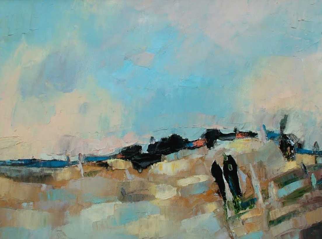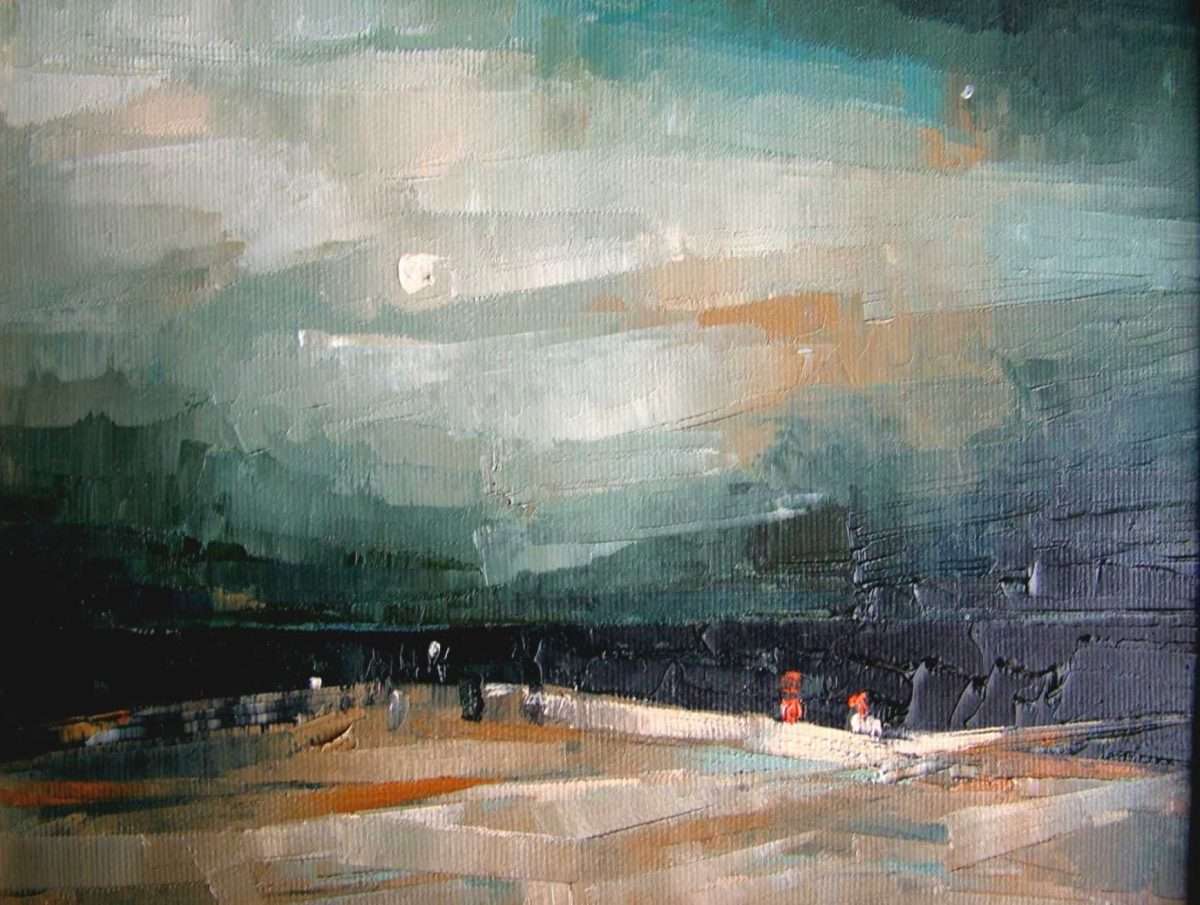 Pred nama je dio ciklusa u ulju na platnu, posvećen vrlo privlačnom motivu tajanstvenog krajolika, prostor puste zemlje iznad kojih se vijori igra raznolikih formi oblaka, debelih i gustih u najavljivanju potopa , ponešto prozirnijim, možda obećavaju i malo sunca, jednom, uskoro, budimo strpljivi.