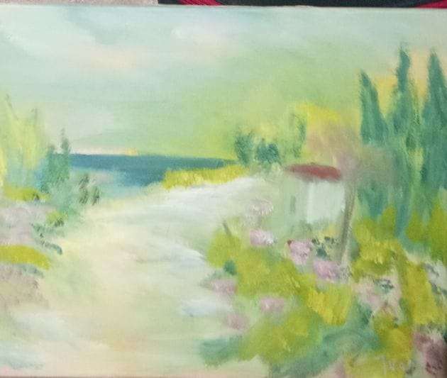 Lijep i profinjeni ciklus slika sa crkvicom pored staze, prije mora.
