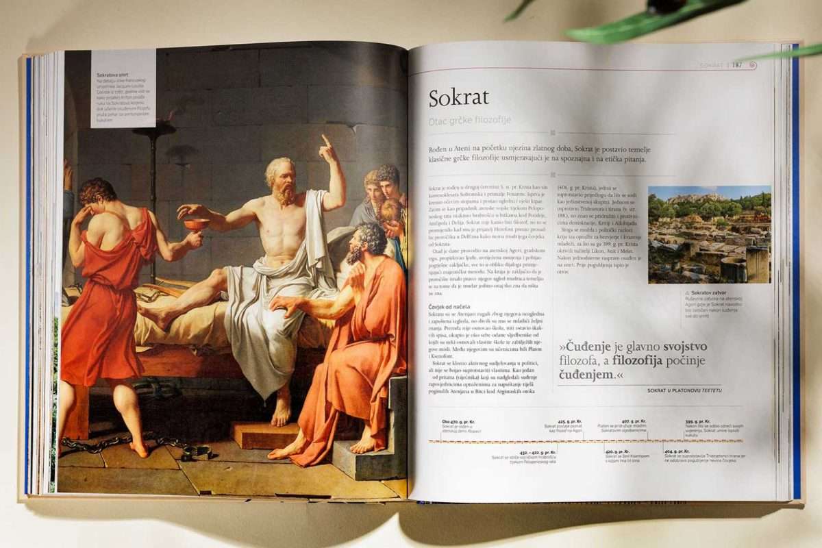 Zakopane palače i atenske agore, na kojima su Platon i Sokrat raspravljali o filozofiji, oživljene su posebnim digitalnim rekonstrukcijama, a priče običnih građana, donositelja odluka i prvih olimpijskih sportaša pripovijedaju se uz pomoć ilustracija, artefakata i svjedočanstava iz prve ruke. Ta nesvakidašnje lijepa knjiga daje uvid i u svakidašnji život stanovnika antičke Grčke u različitim razdobljima burne povijesti.