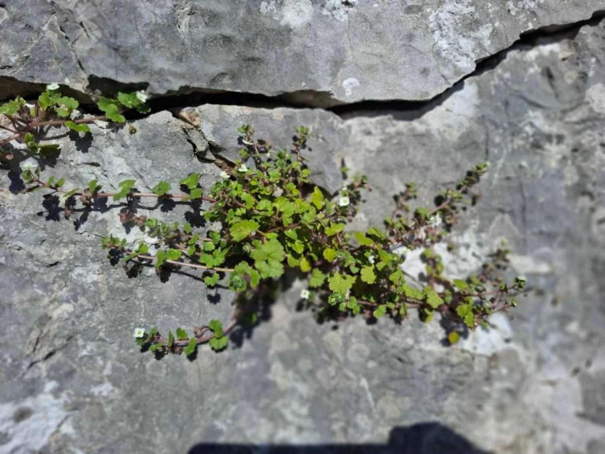Na stazi nema bogatije vegetacije i ona je prilično dobro prohodna. Korak po korak stigosmo ispred jedne masivne stijene koja je gotovo sva prekrivena bršljanom (Hedera helix). Stijena, obrasla gustim zelenilom, izgleda kao prirodni kameni zid koji čuva put prema višim predjelima Orahovca.