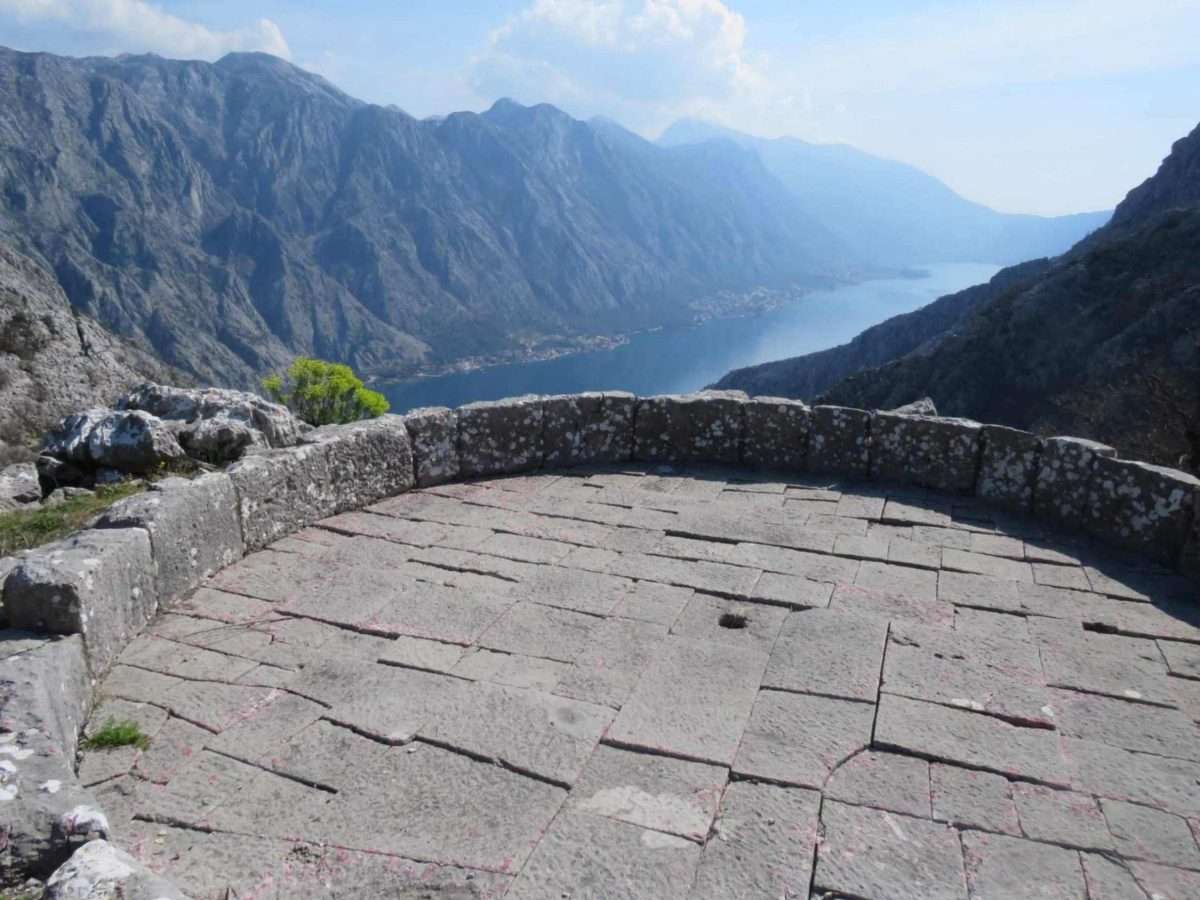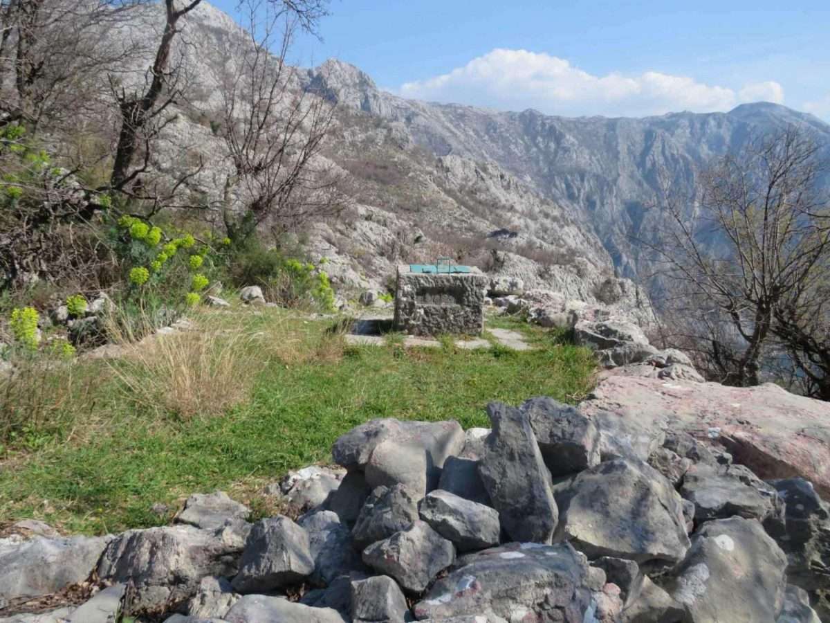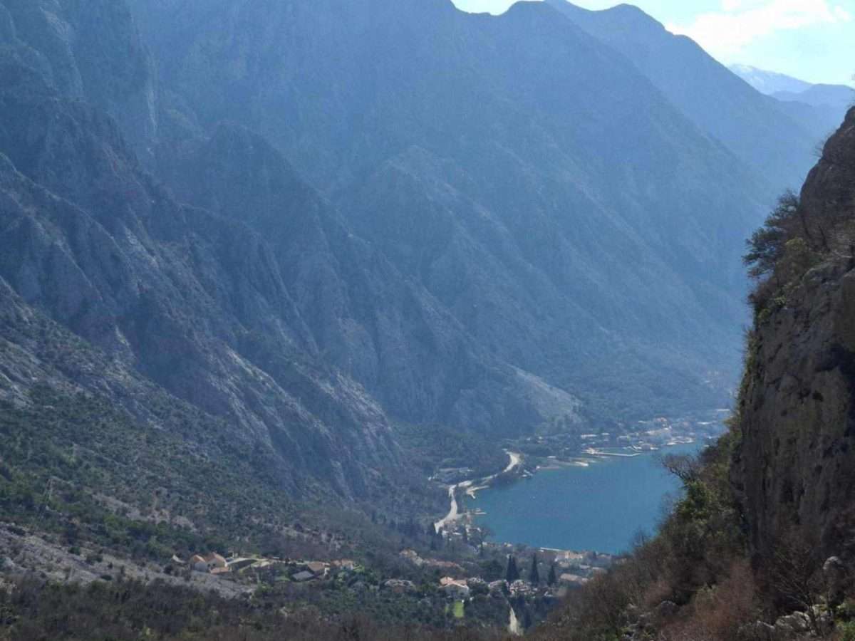 Zadržavamo se na ovom mjestu. Pogled koji se odavde pruža obuhvata čitavu širinu prostora i more i kopno, spoj Boke i njenog kamenitog zaleđa. Ispod nas se kao na dlanu otvara Bokokotorski zaliv, duboko usječen između planinskih vijenaca, dok se more presijava na jutarnjem svjetlu. Sa ove visine jasno se vidi kako se obala lagano spušta prema moru, đe su mala mjesta i kamene kuće poput bijelih tačaka razasute uz obalu. U daljini se prepoznaju linije Dobrote, Perasta i Risna, dok se iza njih uzdižu visoki kraški grebeni koji zatvaraju horizont.