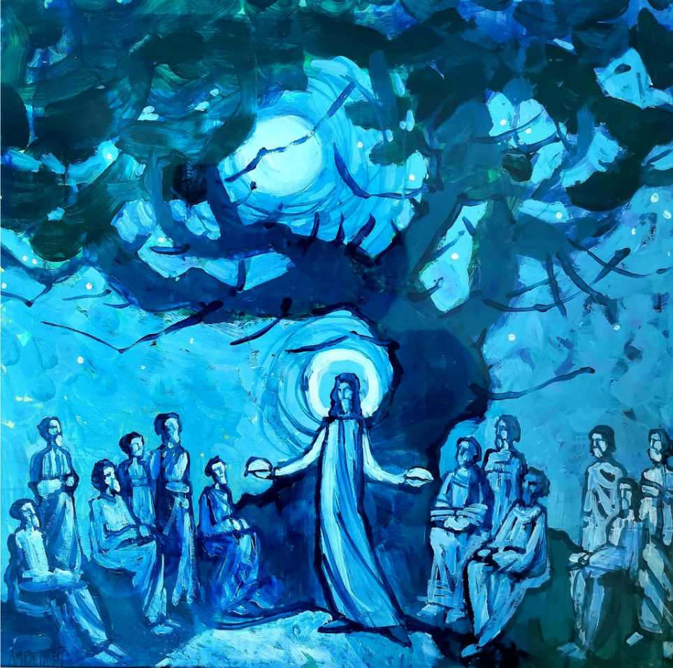“Obje slikarice, Karin Grenc i Ana Marija Botteri, svaka kroz vlastiti i prepoznatljiv vizualni jezik, posežu za motivima iz kršćanske ikonografije, stavljajući u središte Krista i naglašavajući njegovu poruku ljubavi prema čovjeku“, ističe u Predgovoru Darka Perko Kerum.